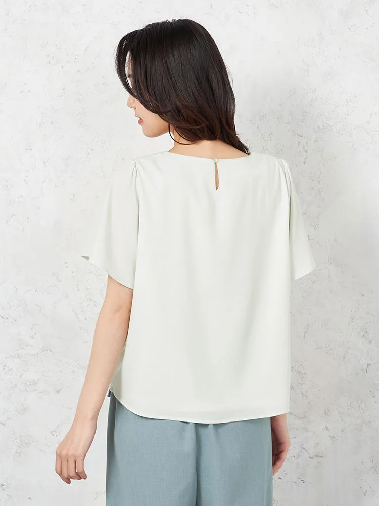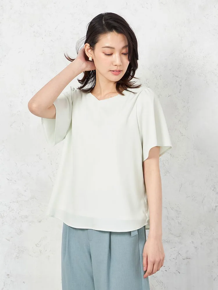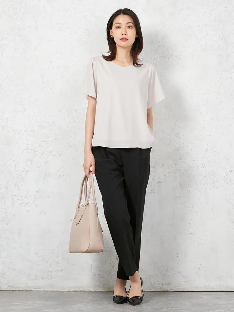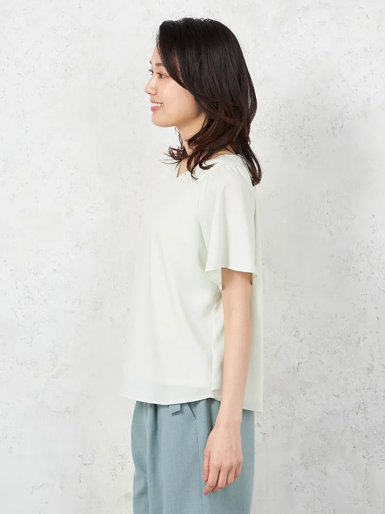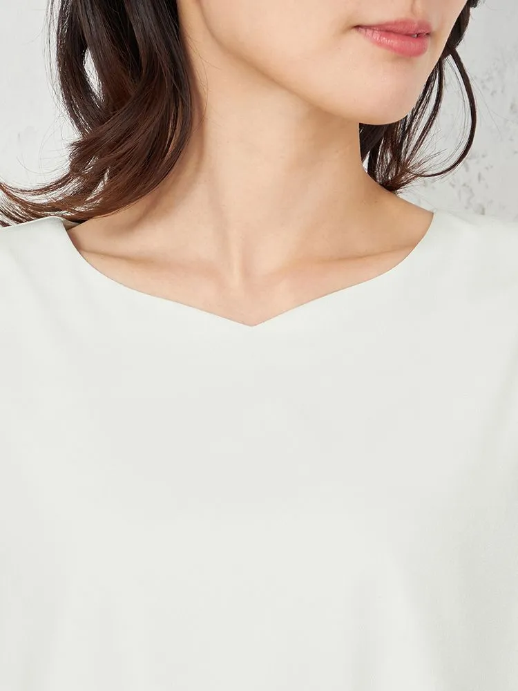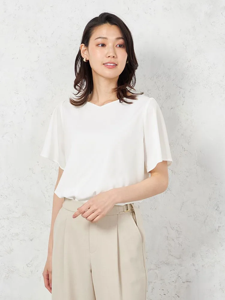 【ウォッシャブル】半袖 ハートネックブラウス 防臭抗菌 透けにくい 無地 SOFFICE 春夏【レディース】(ベージュ)