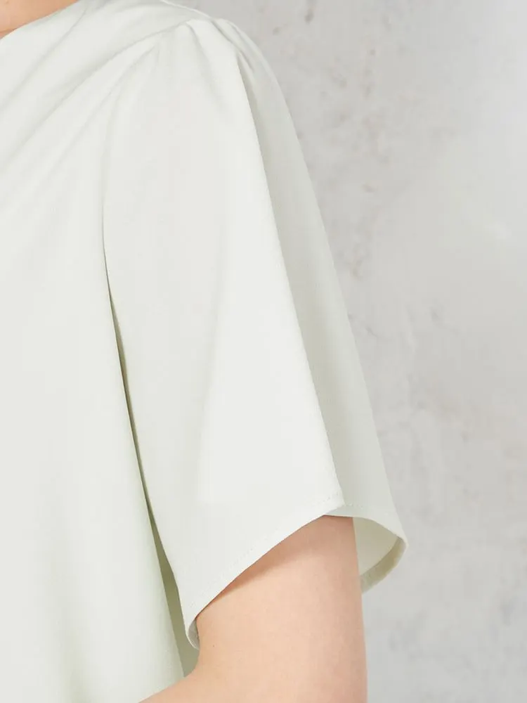 【透けにくい】ブラウス5分袖ハイネックタックデザイン無地SOFFICE春夏【レディース】
