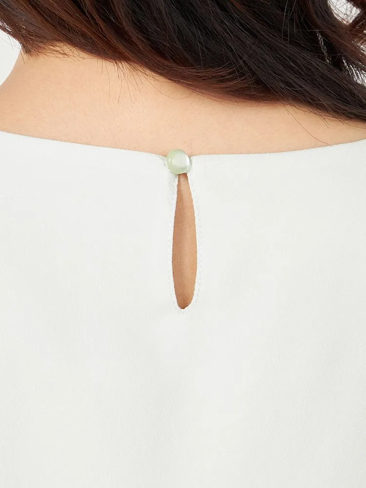 さりげなく可愛らしさをプラスできるハートネックのブラウスです。