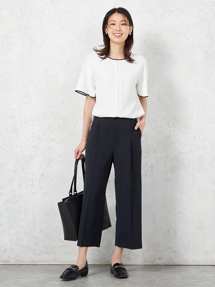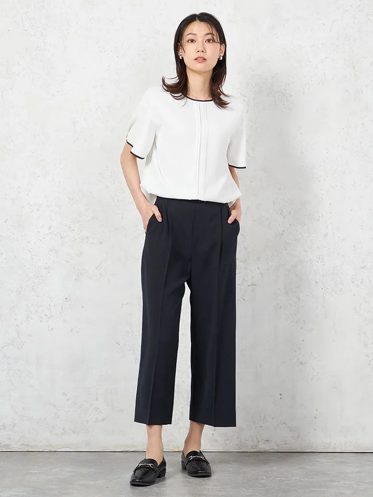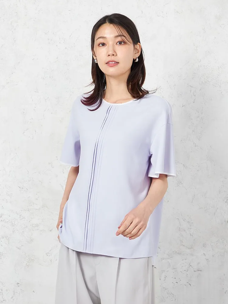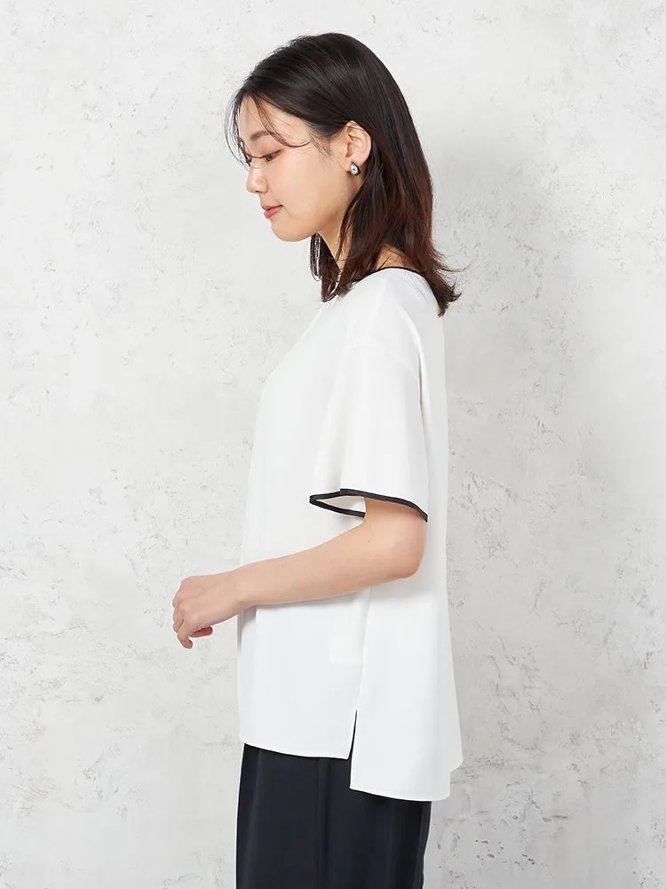 Tシャツ感覚で着られるキレイ目ブラウスデザイン。程よいゆとりですっきりとしたみえ感で着用いただけます。