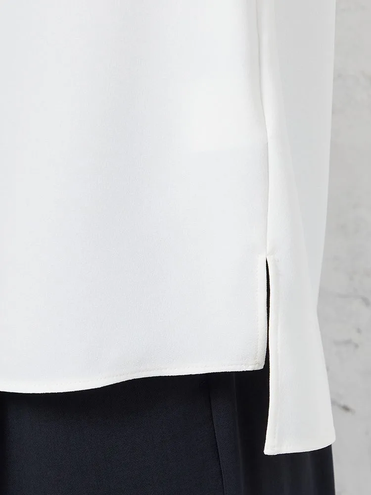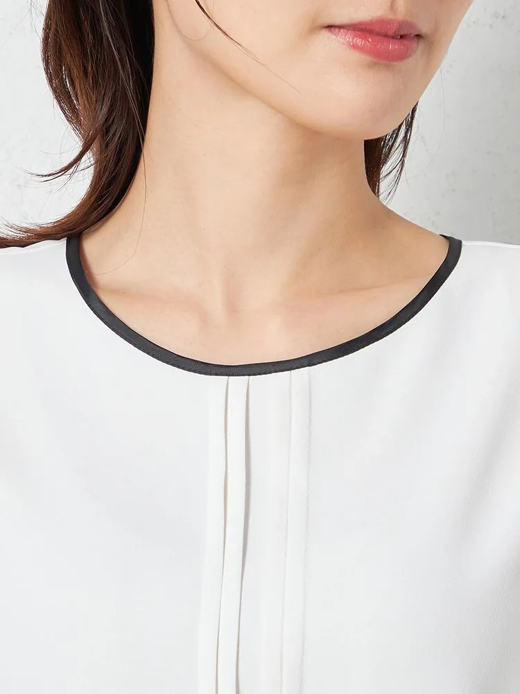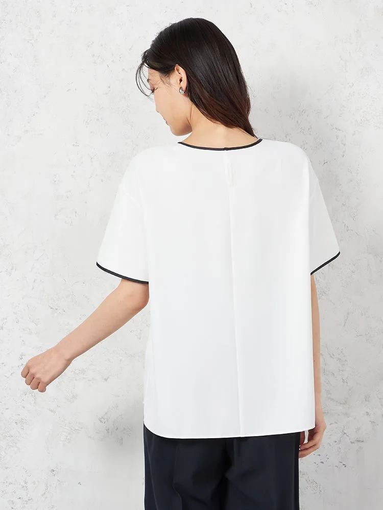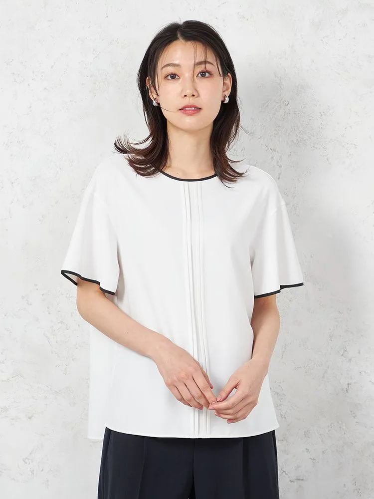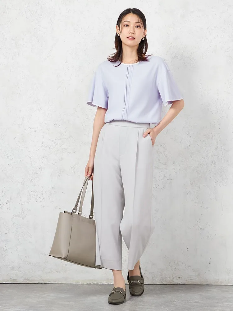 Tシャツ感覚で着られるキレイ目ブラウスデザイン。程よいゆとりですっきりとしたみえ感で着用いただけます。