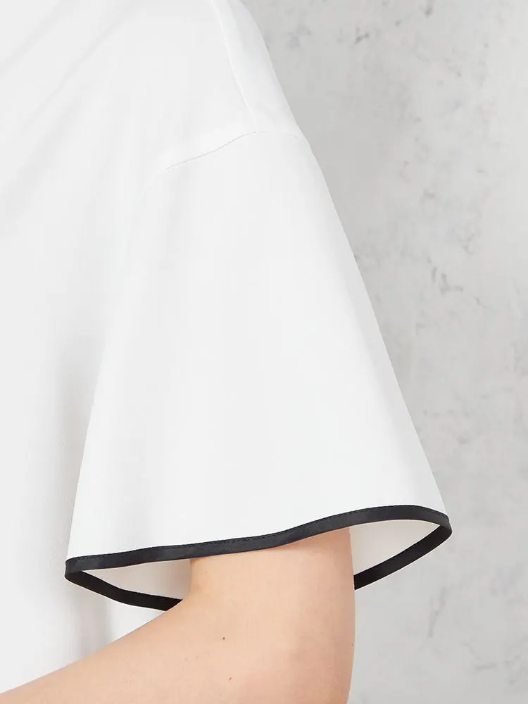 【INDIVI】ウォッシャブル ソフトクレープ 半袖 配色ブラウス 無地 春夏【レディース】(ラベンダー)
