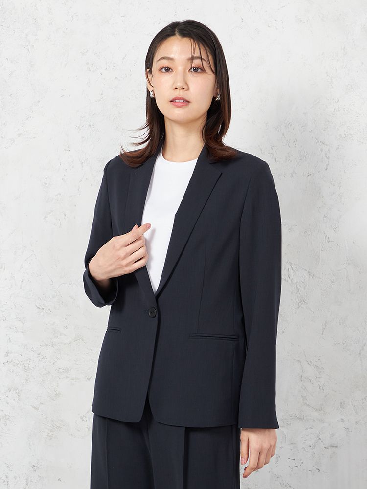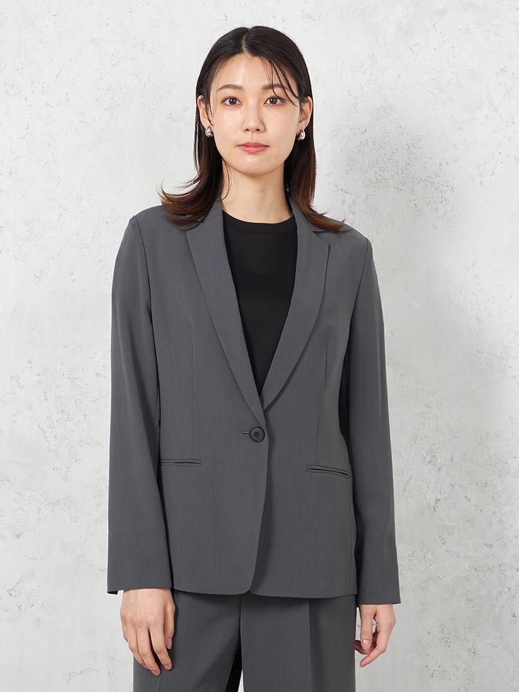 1つボタンのデザインで、シンプルかつスタイリッシュな印象を与えます。洗練されたシルエットが特徴です。