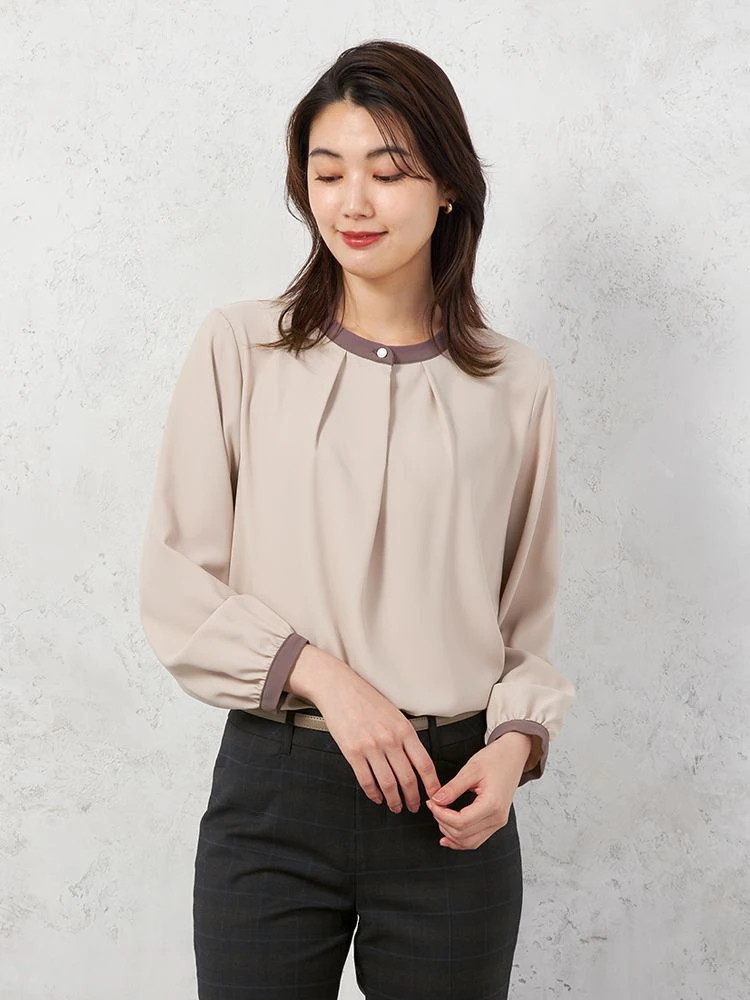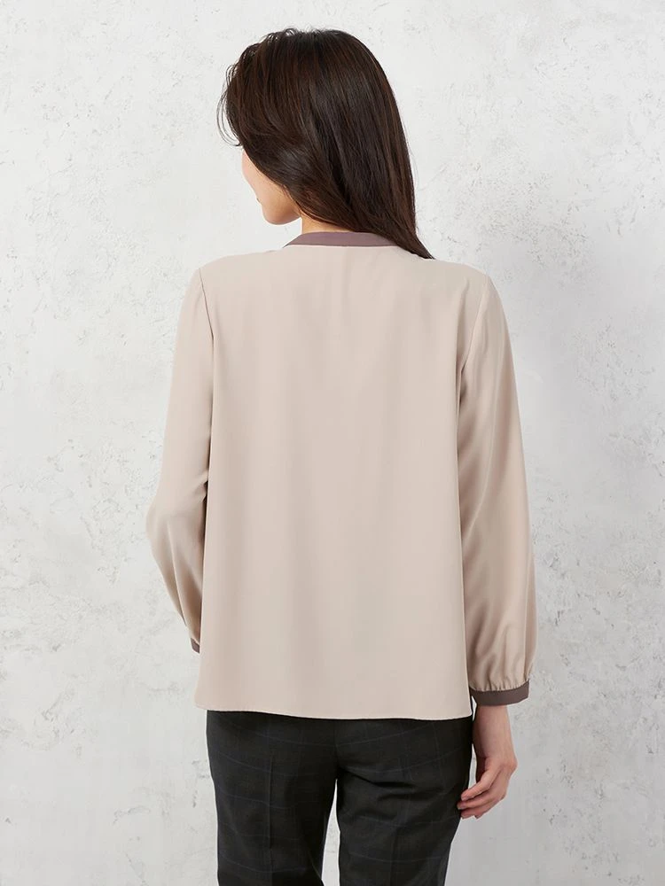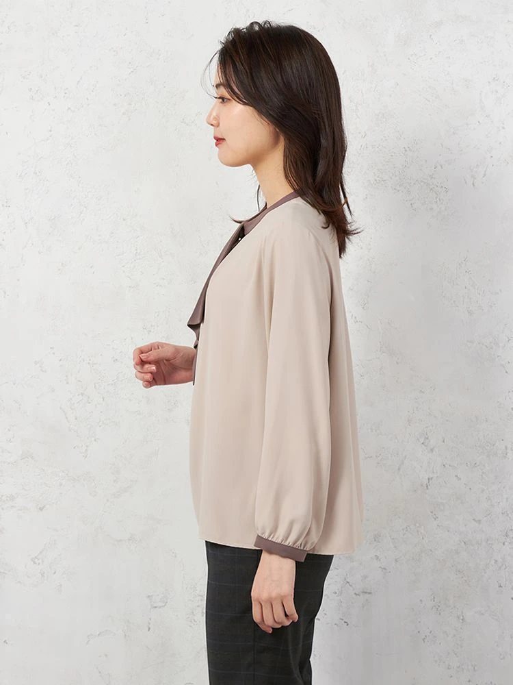 【ストレッチ】ラチネ織 配色ボウタイ 2WAYブラウス 9分袖 ウォッシャブル SOFFICE 通年【レディース】(ベージュ)