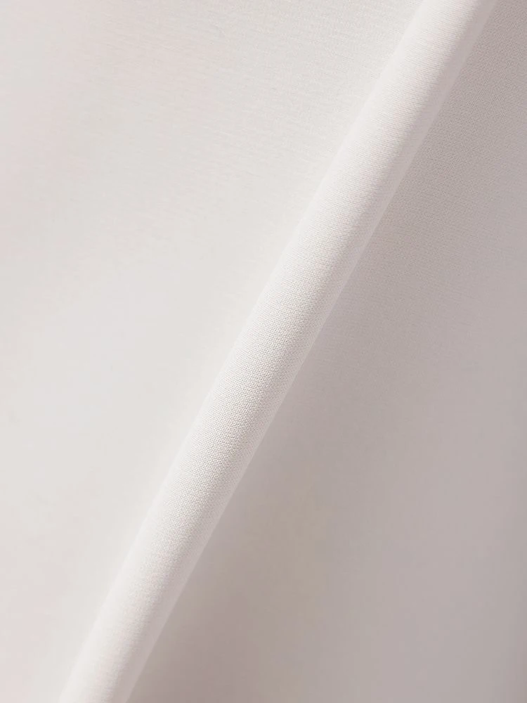 顔まわりやデコルテをやわらかく包むようなドレープネックがエレガントなブラウス。