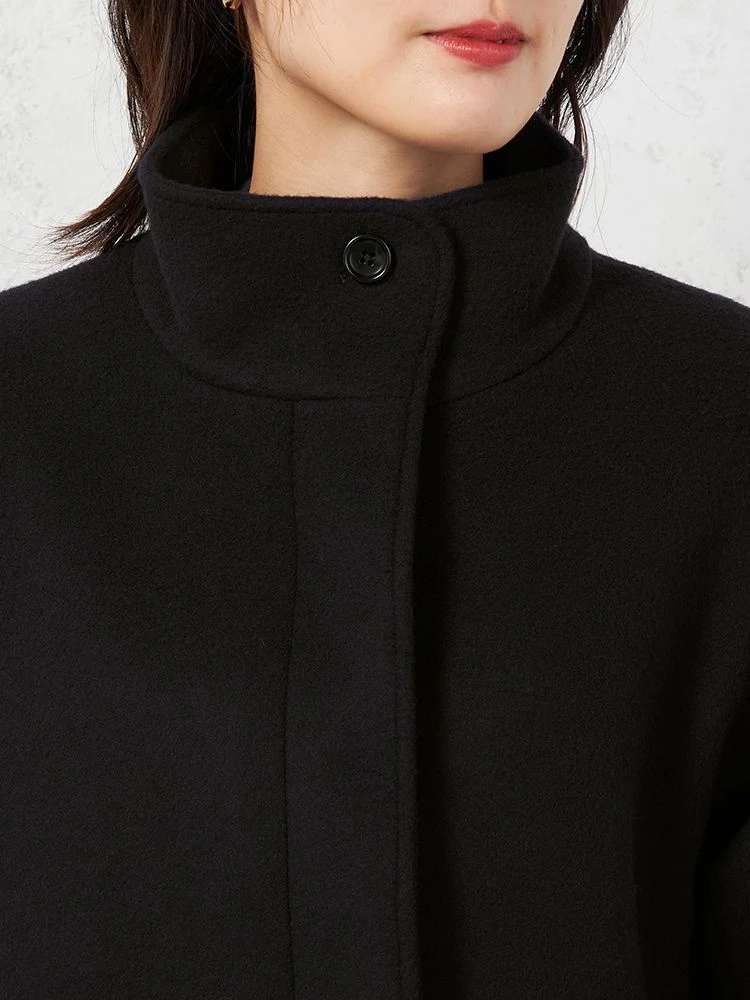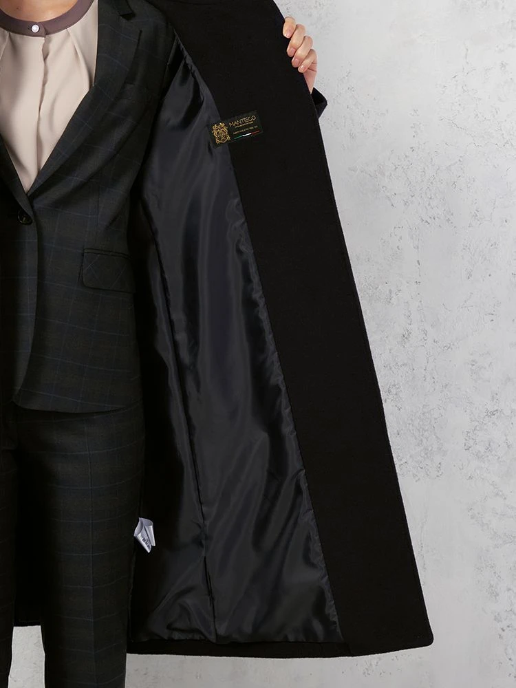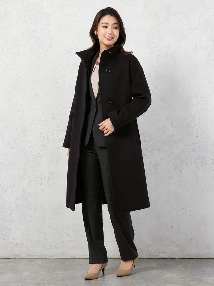 イタリアプラトー地区のMANTECO社にて生産された二重織紡毛素材を使用したスタンドカラーコート。
