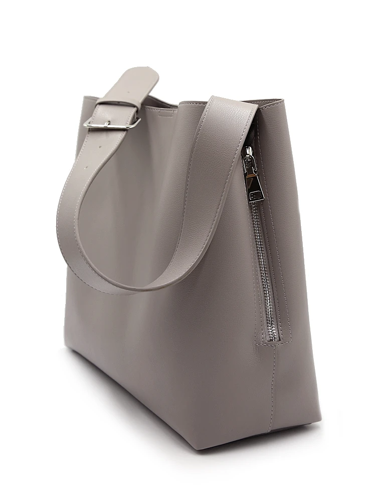 サイドのファスナーがデザインのポイントになっており開閉で容量サイズが変更できます。