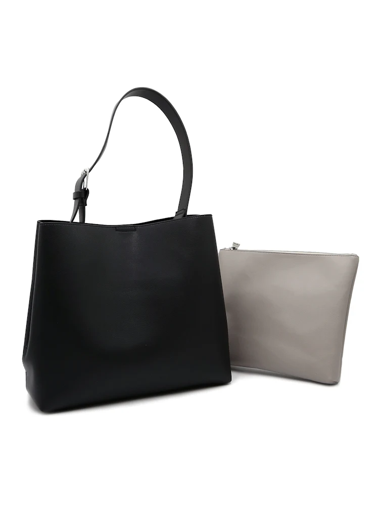 【INDIVI】ワンショルダーバッグ ポーチ付き A4対応 ブラック/グレー 無地 通年【レディース】(ブラック)