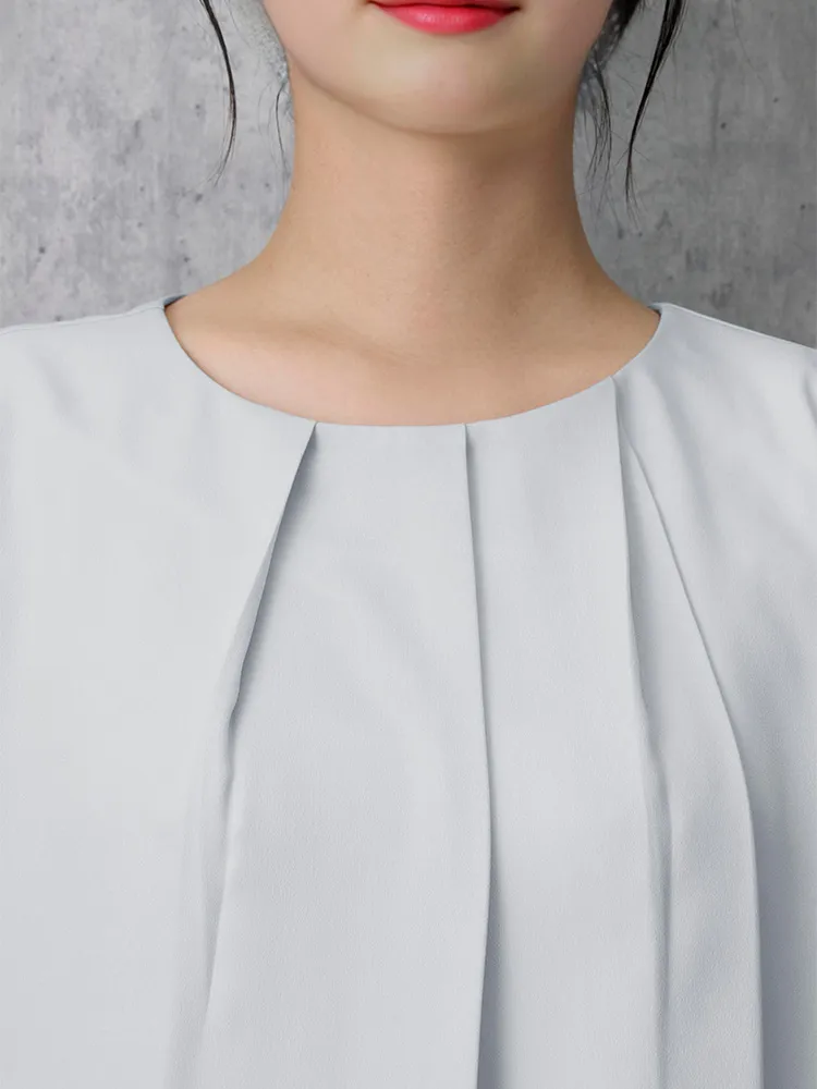 【ウォッシャブル】7分袖袖プリーツブラウスUVカット透けにくい2枚仕立て無地SOFFICE春夏【レディース】