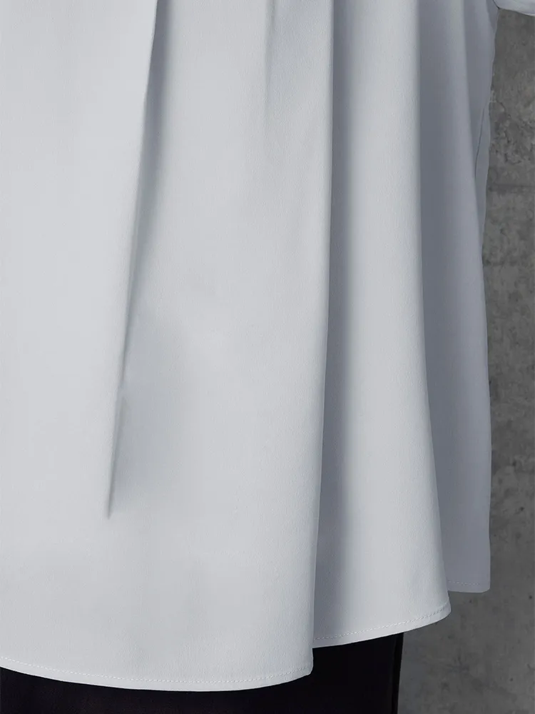 【イージーケア】ジョーゼット2枚重ね裾バルーンパールボタンブラウス9分袖透け軽減ウォッシャブルSOFFICE通年【レディース】