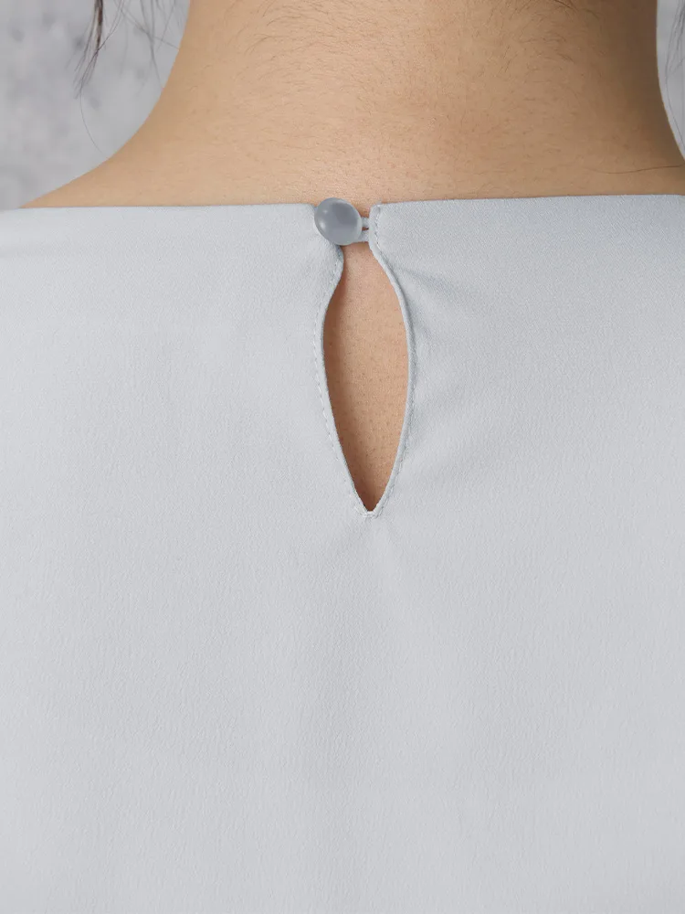 身頃が2枚重ねなので、1枚で着用しても下着が透けにくく安心して着用いただけます。