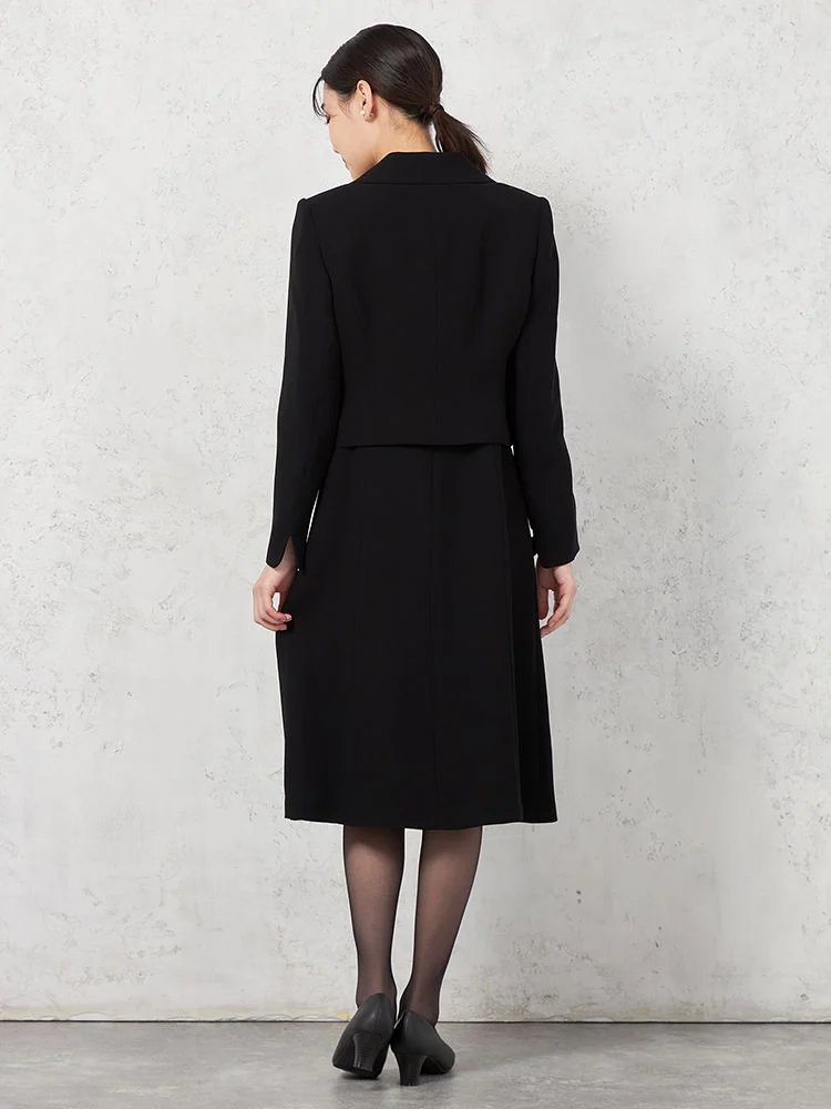 【即納】【WEB限定フォーマル】 ショールカラーアンサンブル ジャケット/ワンピース 黒無地 通年 礼服【レディース】