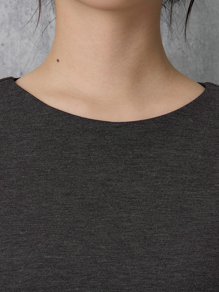 伸縮性あるジャージ素材なので、きちんと感とラクちん感を両方叶えるブラウスです。