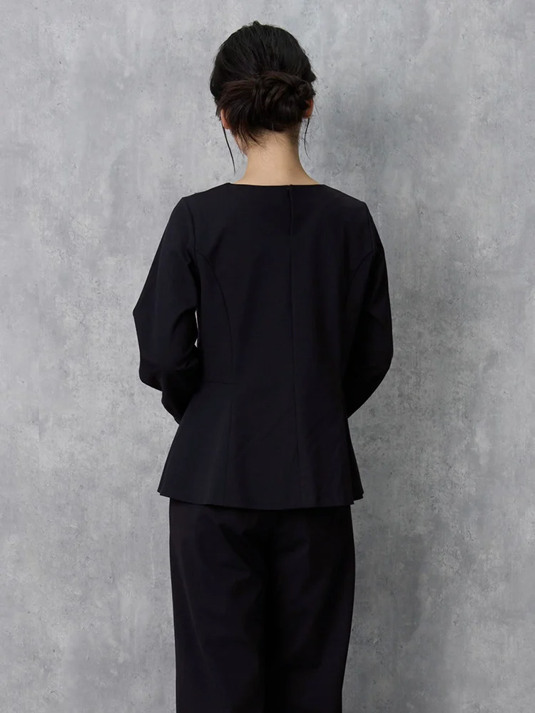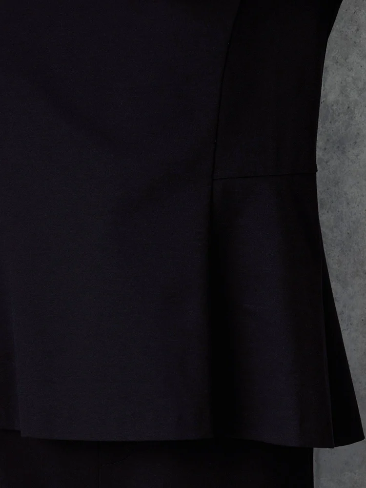 ウェストをやや絞り裾に向かって広がるペプラムブラウスです。