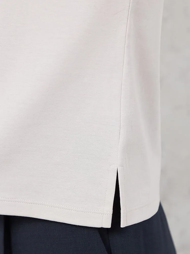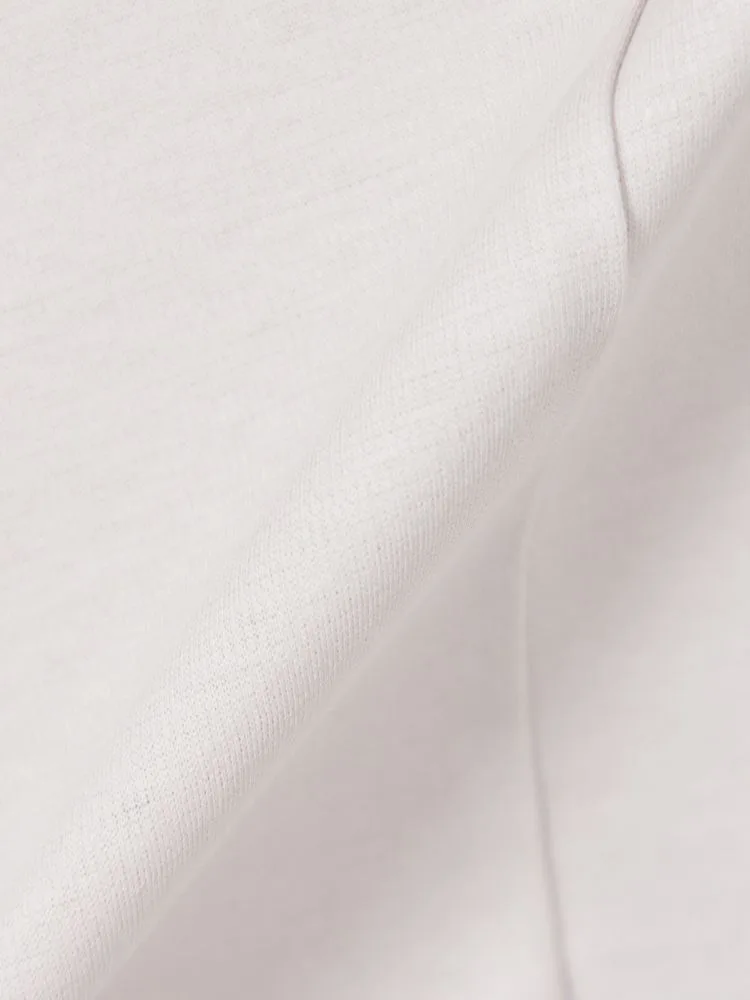 適度な肉感のポンチ素材で身体のラインを拾いにくく、またシルケット加工を施すことにより、滑らかな肌触りと上品な表面感に仕上がっています。