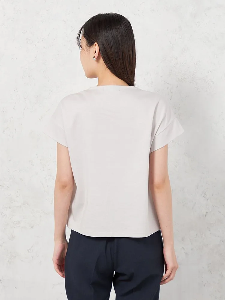 【INDIVI】シルケットポンチ フロントVデザイン 半袖Tシャツ 春夏【レディース】(L.グレー)