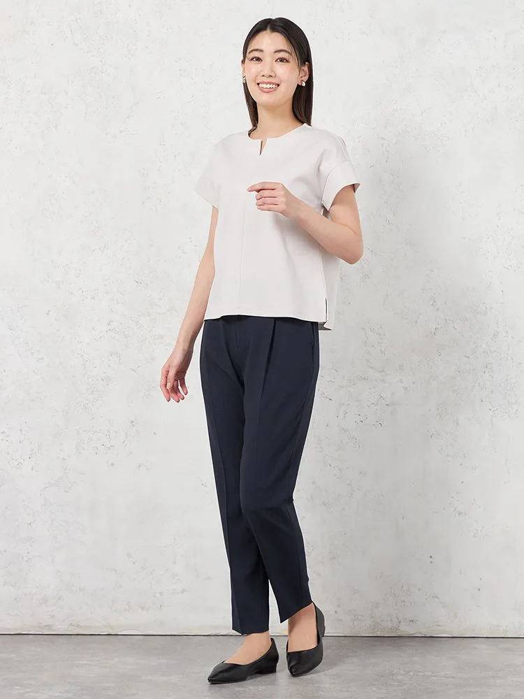 【INDIVI】ウォッシャブルソフトクレープ半袖Vネックタックブラウス無地春夏【レディース】