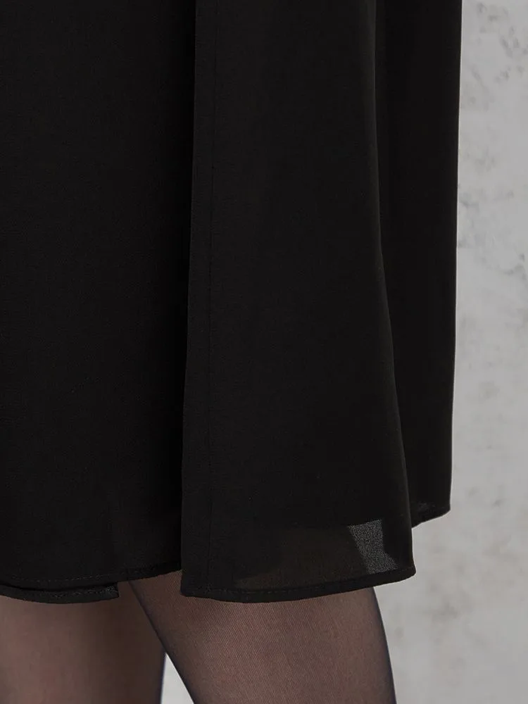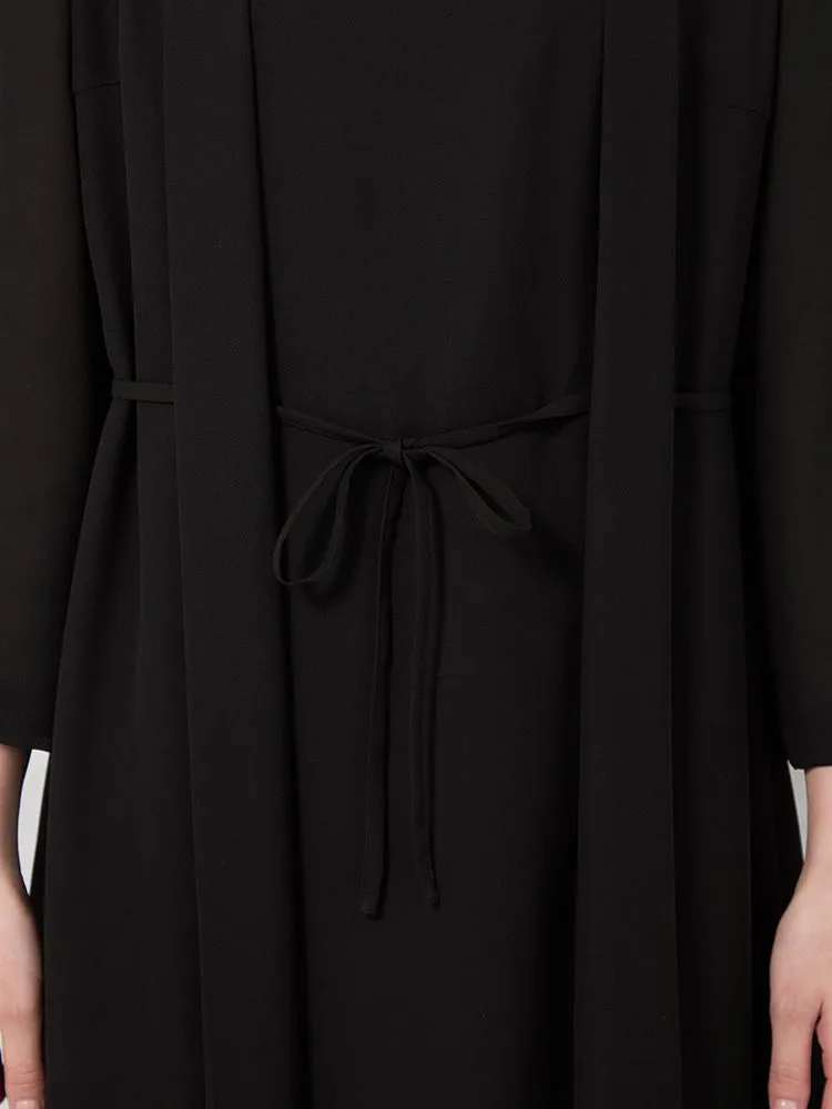 フロントファスナー仕様で着脱が簡単。ウエストリボンでシルエットを変え2WAYでご着用いただけます。