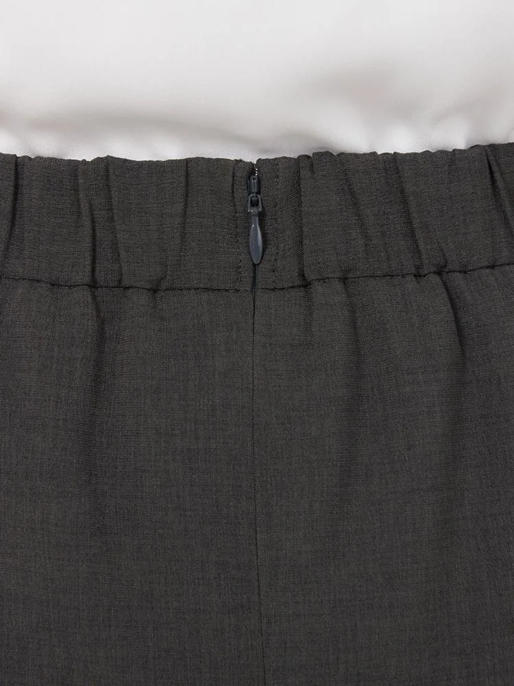ウエストの後ろはゴム切り替えでお腹まわりを締め付けず、トップスINもすっきりと決まります。