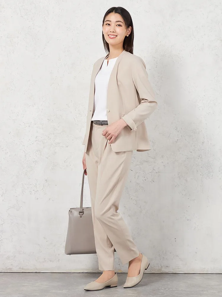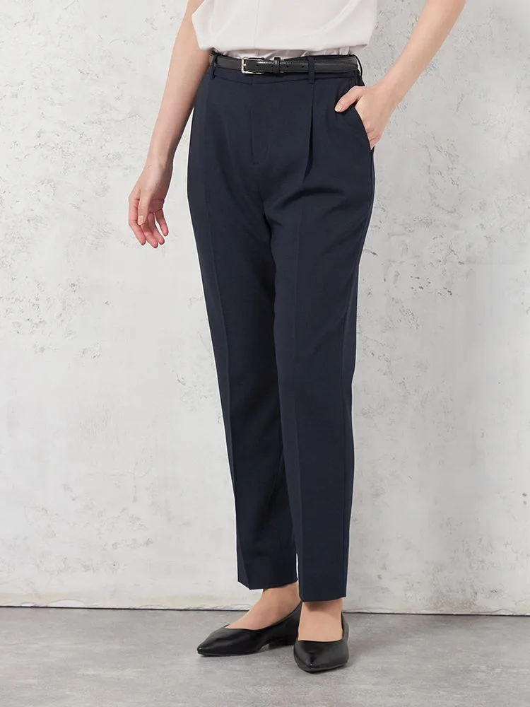 【UVカット&ウォッシャブル】デレガント テーパードパンツ タック入り ストレッチ 無地 SOFFICE 【レディース】