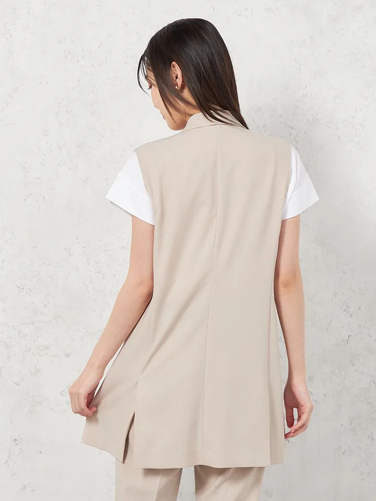セミピークドラペルのスタイリッシュなIラインシルエットのベストですのでジャケットの代わりとしても活躍するアイテムです。