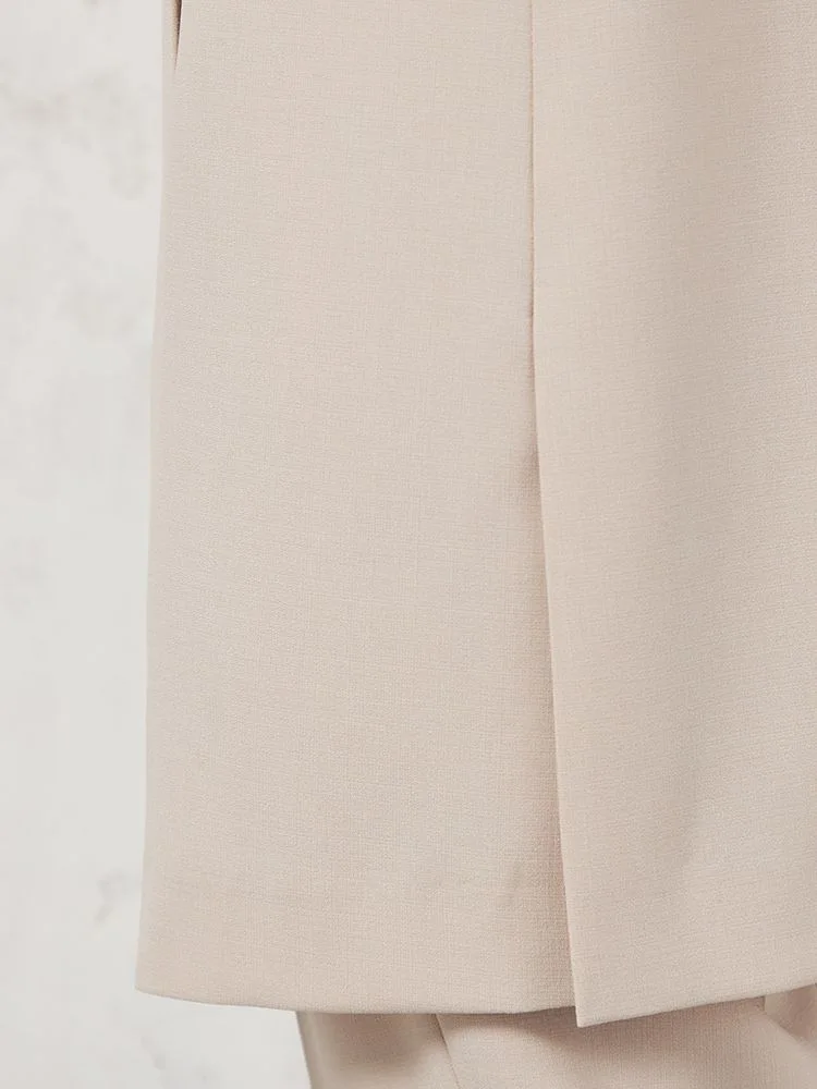 同素材のパンツと合わせたモードなIラインセットアップが今年らしくお薦めです。