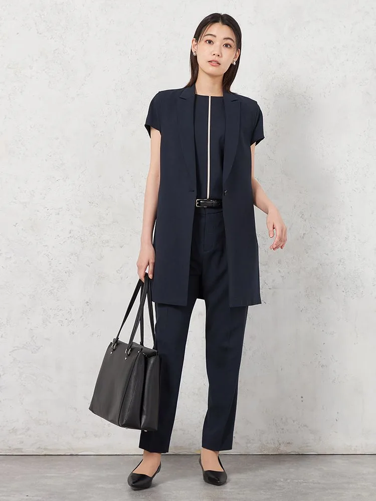暑い時期のTシャツ合わせでもきちんと感のあるスタイリングが叶うベストです。