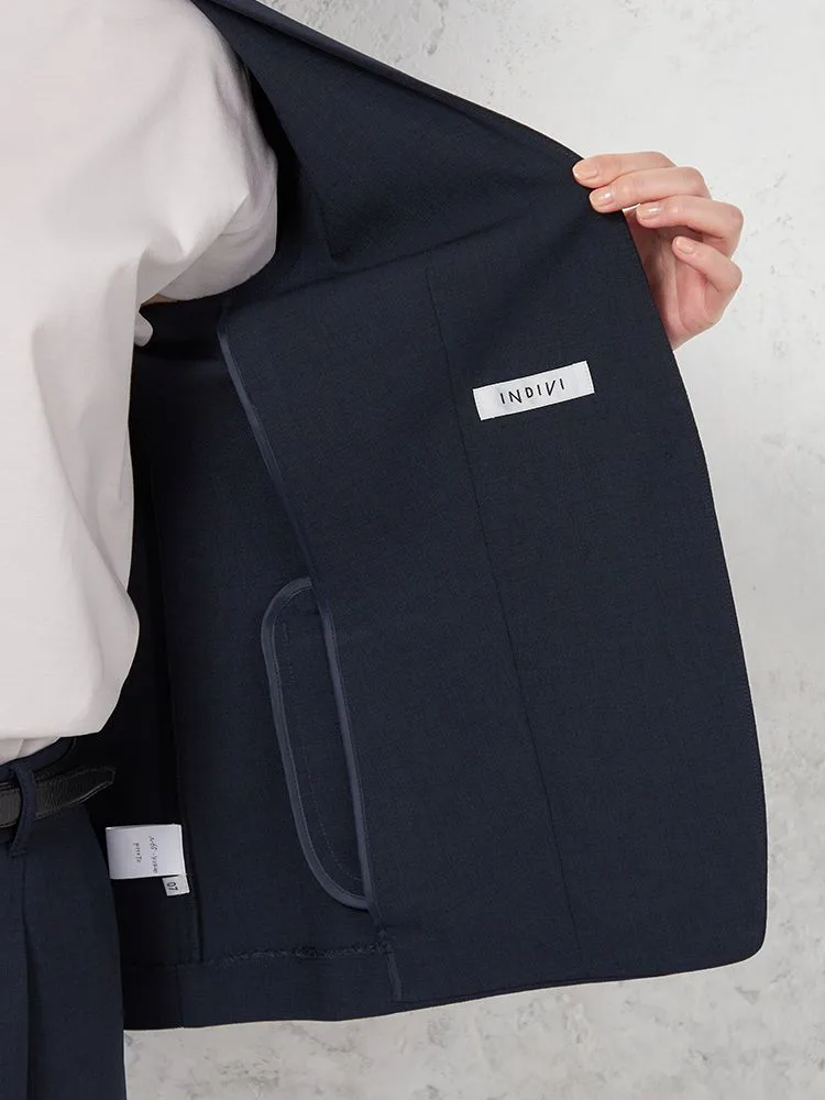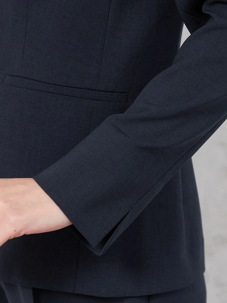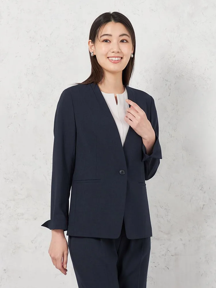 ジャケットはきちんと感を演出しつつ、肩パッドや裏地を無くすことでカチッとしすぎず軽く楽に羽織ることができます。