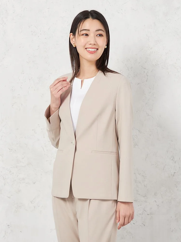 【ウォッシャブル】ノーカラージャケットリネンライクストレッチUVカットSOFFICE春夏【レディース】