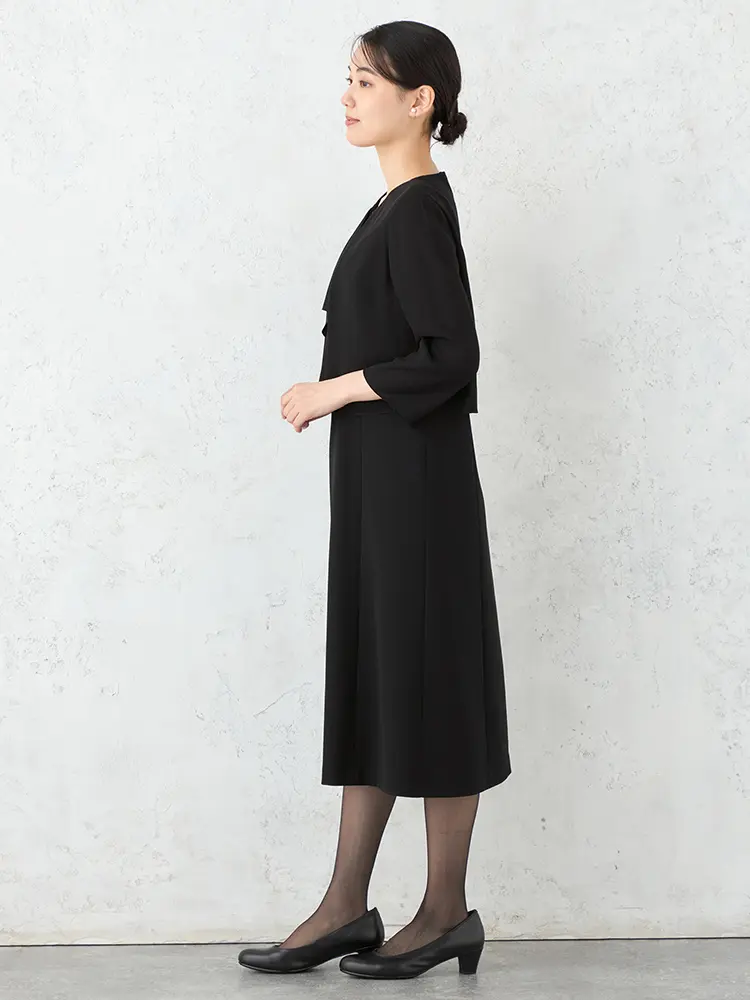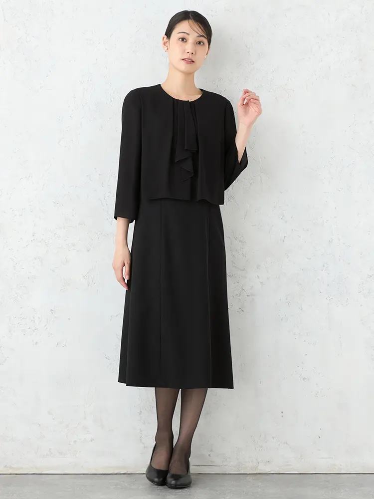 【フォーマル2点セット】スタンドカラージャケット/前開きワンピースアンサンブルウォッシャブルストレッチブラック通年礼服SOFFICE【レディース】