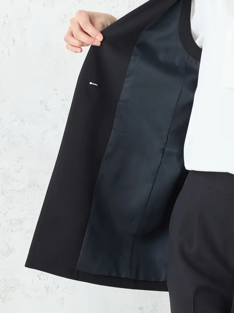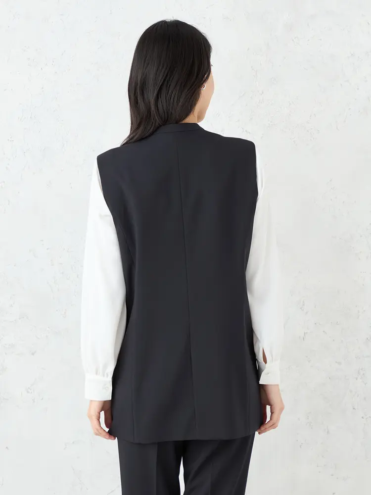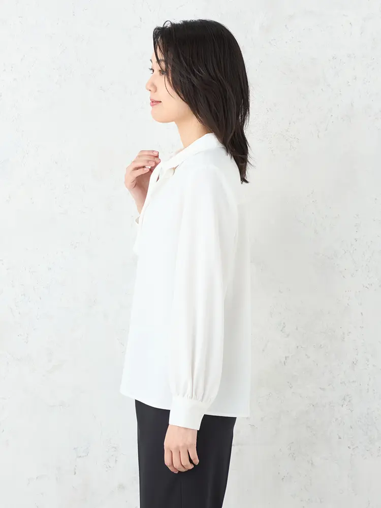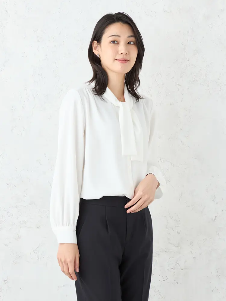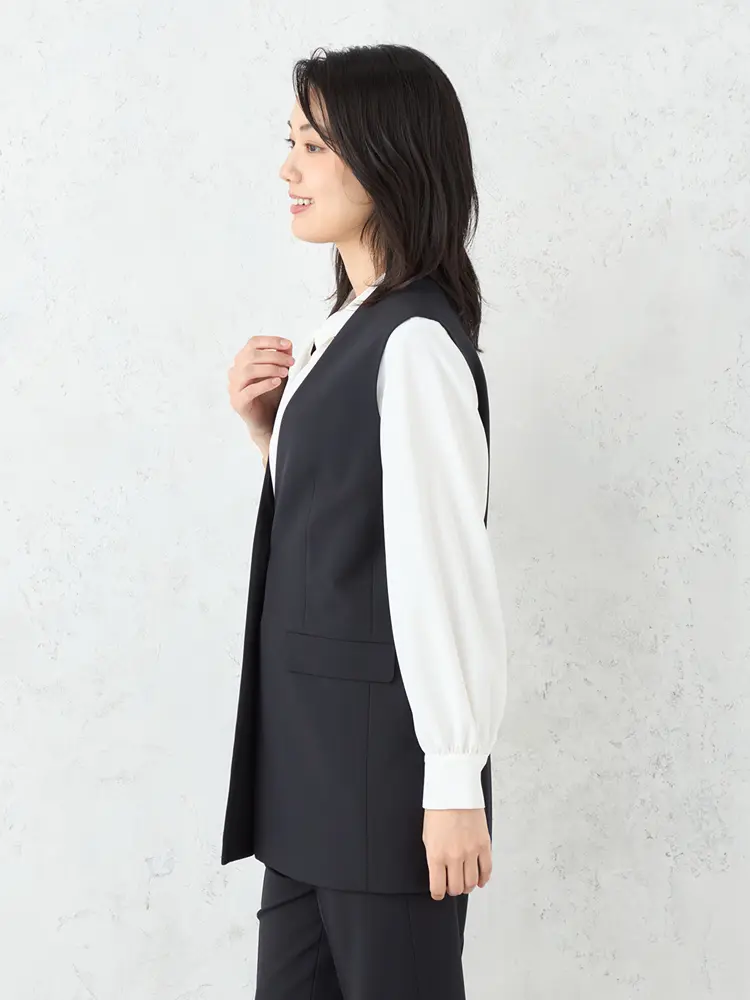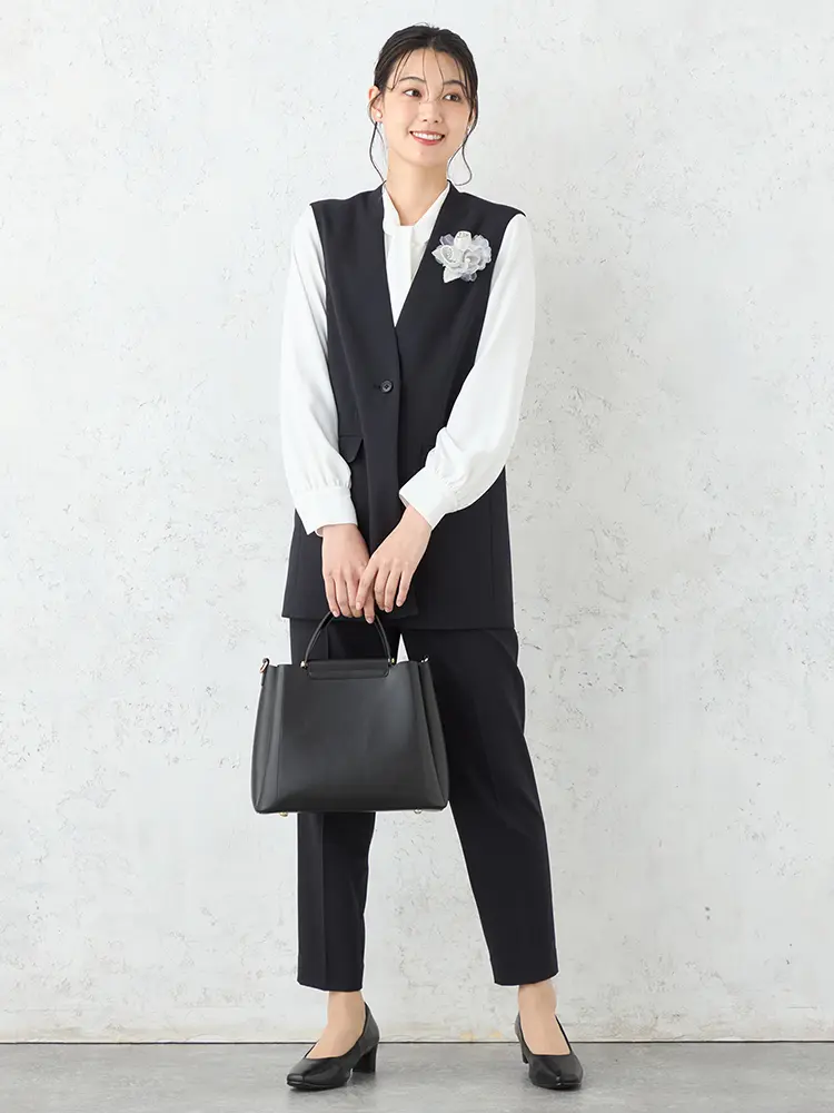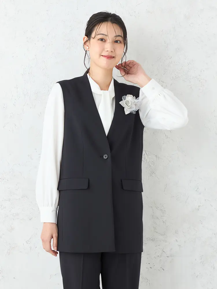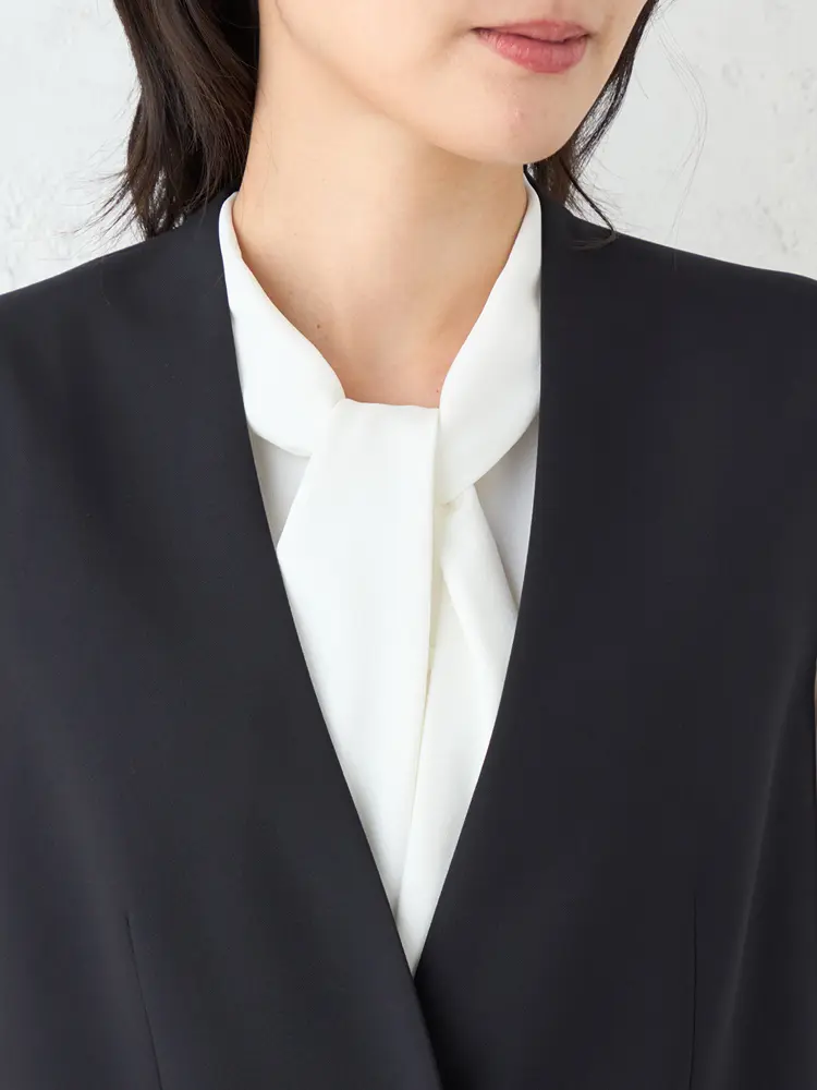 モダンなフォーマルを叶えるボウタイブラウス、ジレ、パンツの3点セット。
