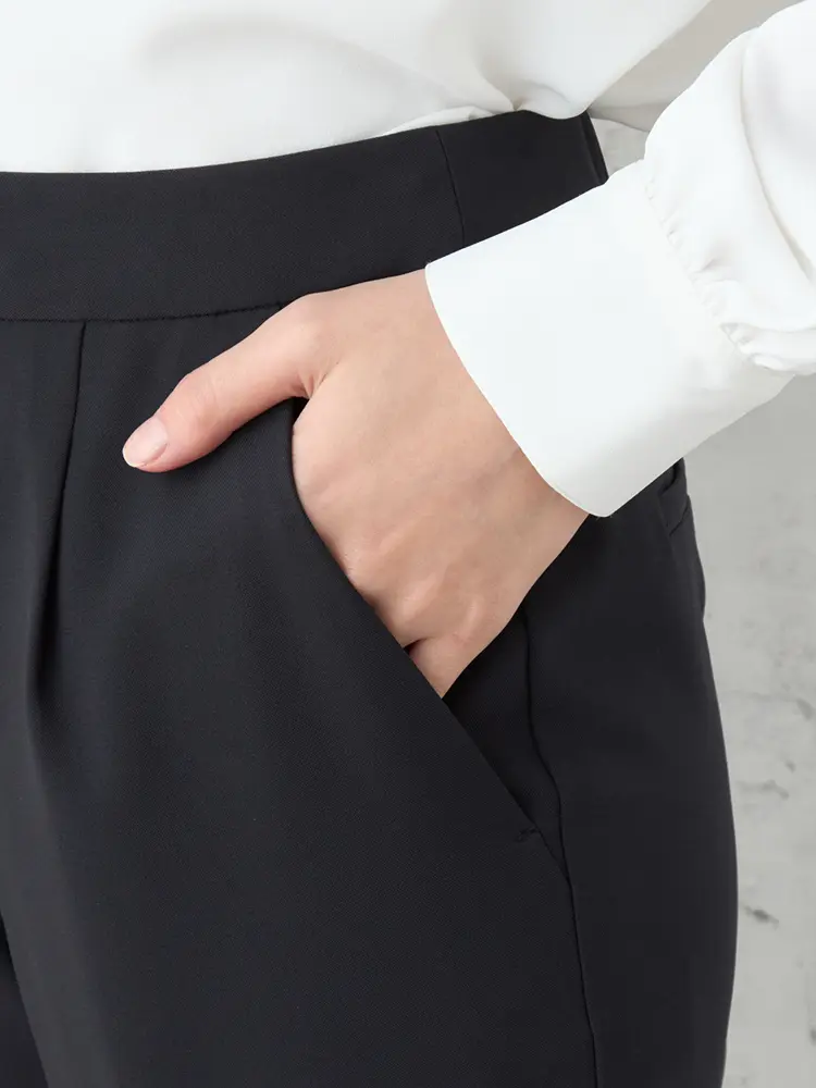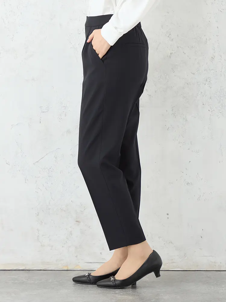 ほどよい肉感と膨らみのある上品なストレッチ素材は、動きやすく快適な着心地です。