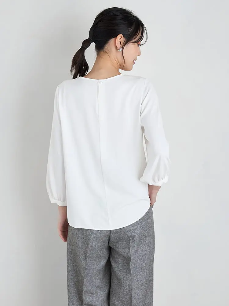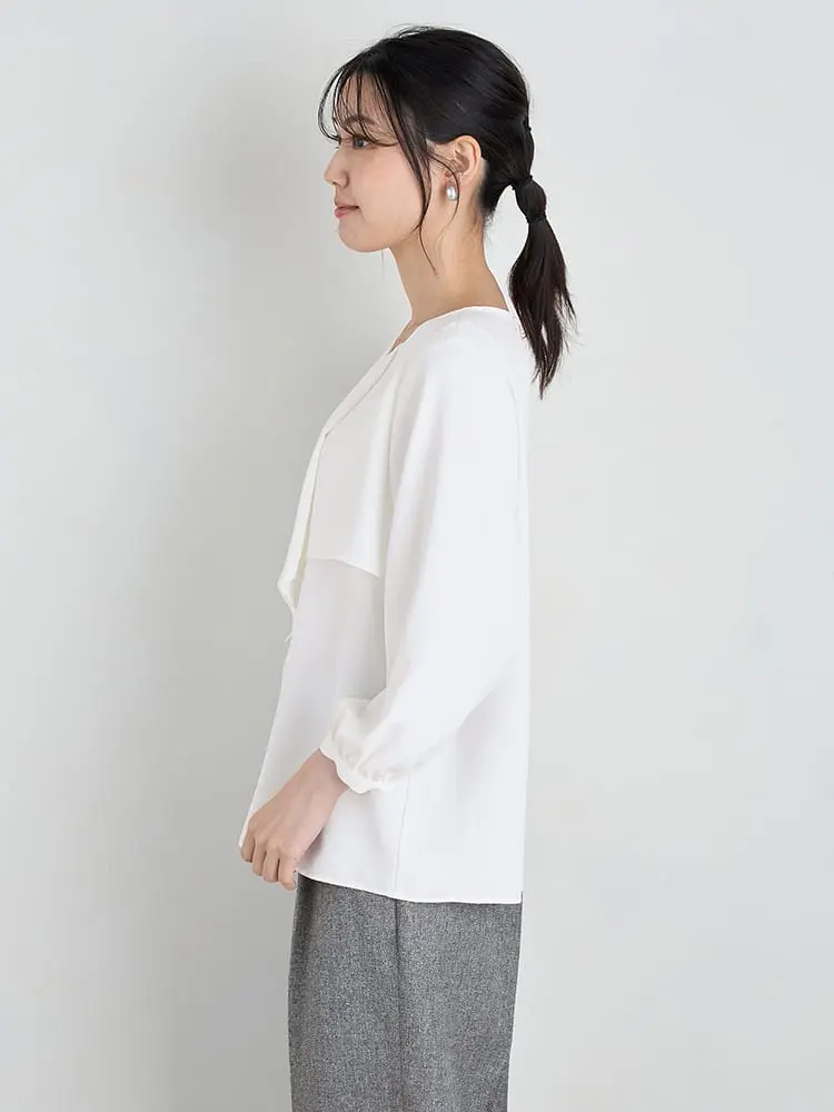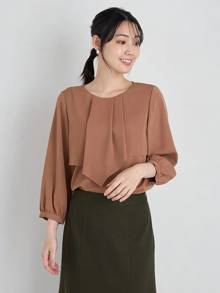 【SOFFICE】2枚仕立てフロントタックブラウス カットソー 長袖プルオーバー ソフィーチェ 消臭加工 ウォッシャブル 通年 【レディース】