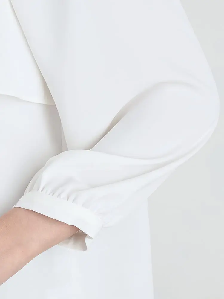 【INDIVI】ブラウス 7分袖 ジョーゼット 2枚重ね 胸タックブラウス ウォッシャブル 無地 通年【レディース】