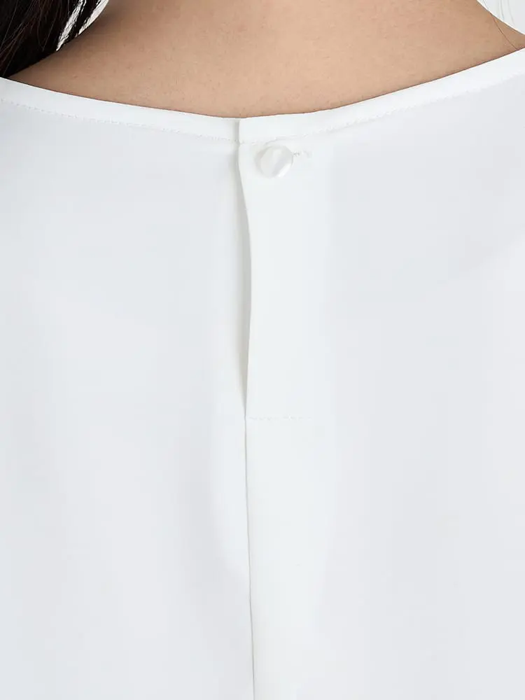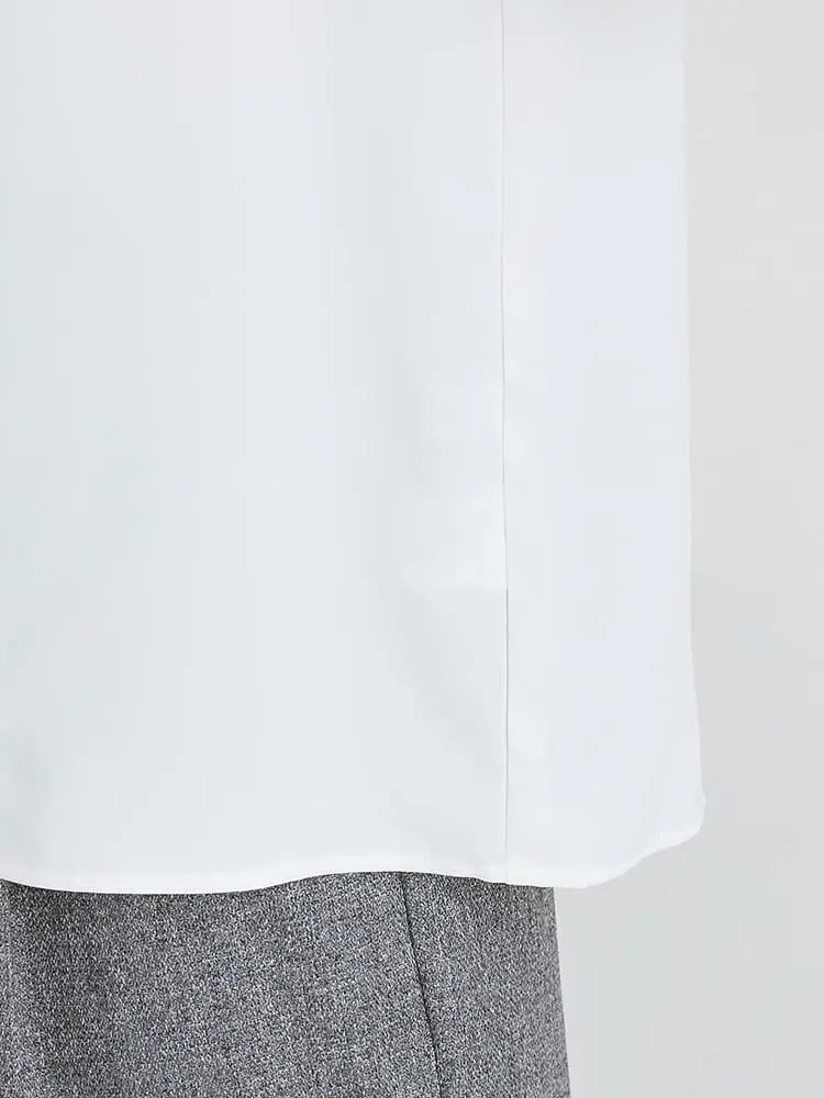 ジャケットのインナーとしても映えるデザインで、オフィスコーデにも活躍します。
