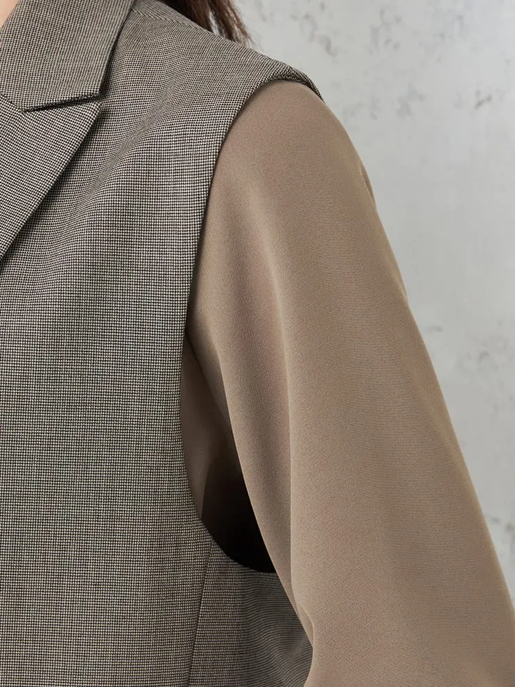 【INDIVI】 キャリーマンウール混ジレ チェック ウォッシャブル 秋冬 【レディース】(ブラウン)