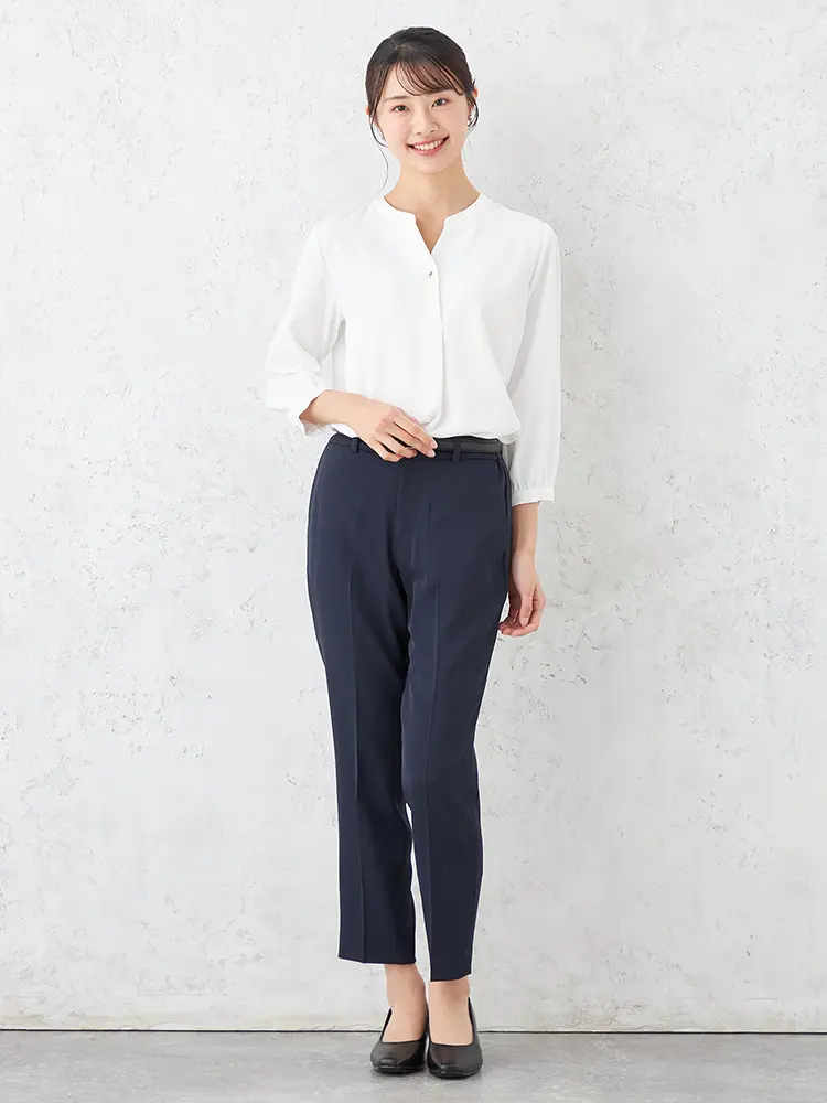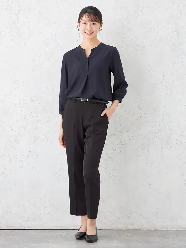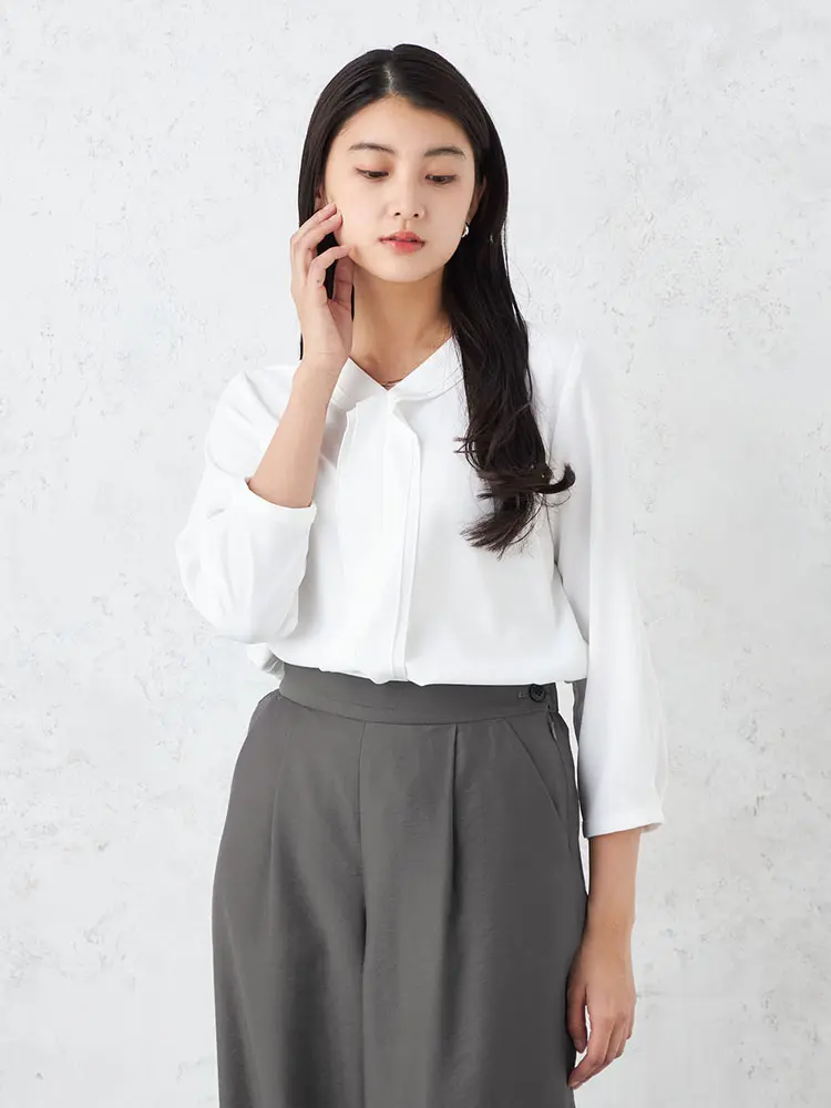 ボトムイン、アウトも両方決まる、絶妙なシルエットバランスのプルオーバーブラウス。