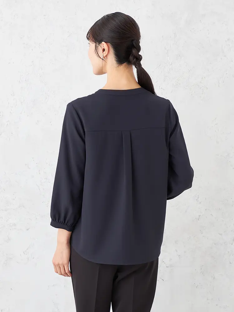 【ウォッシャブル】ブラウス長袖クルーネックプルオーバータックブラウス透けにくいストレッチ無地SOFFICE通年【レディース】