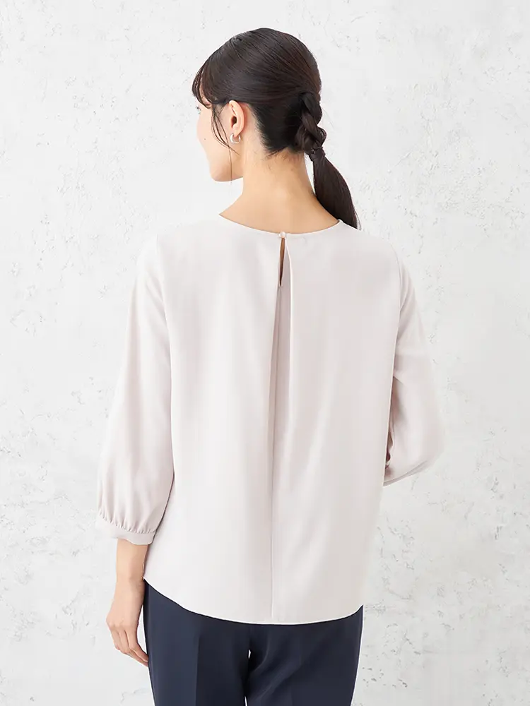 さりげないピンタックデザインが上品な、7分袖プルオーバーブラウスです。