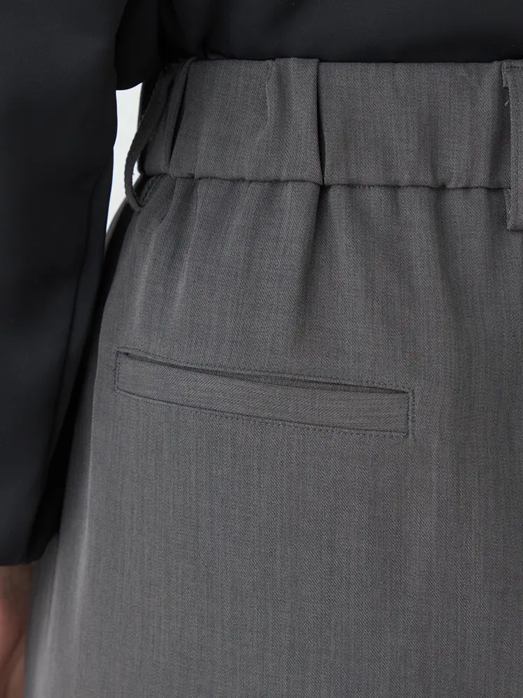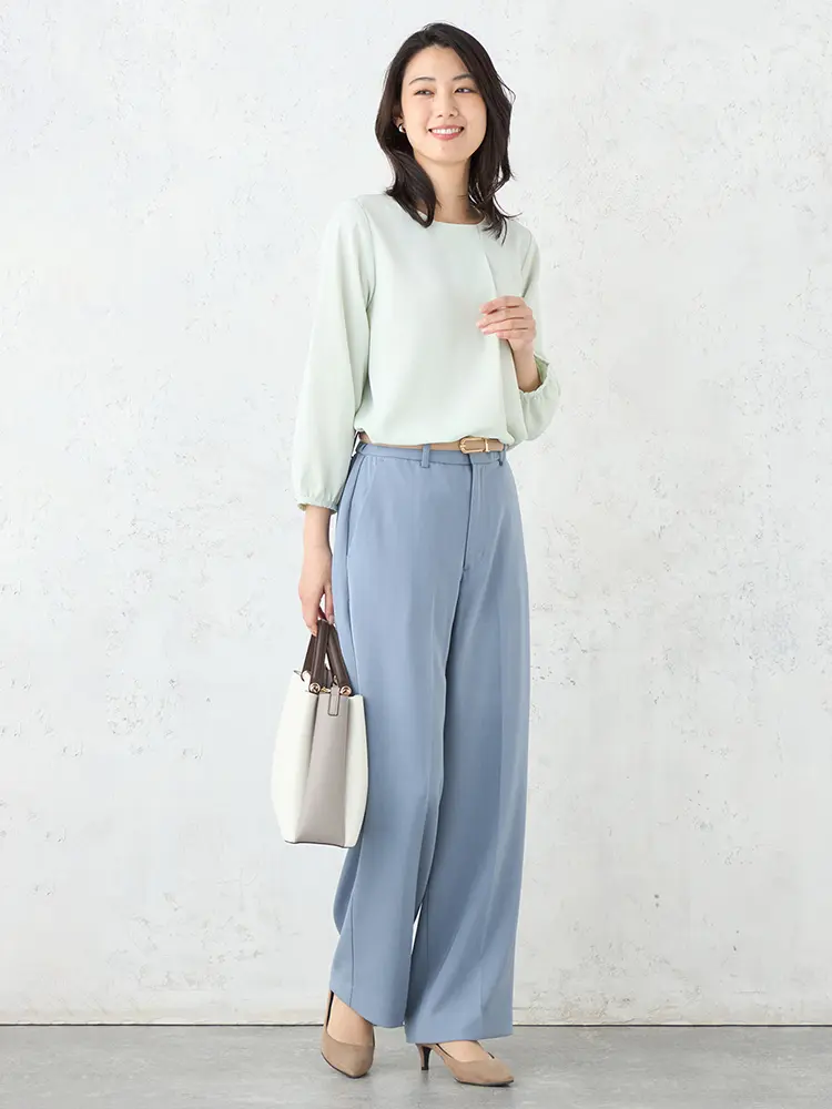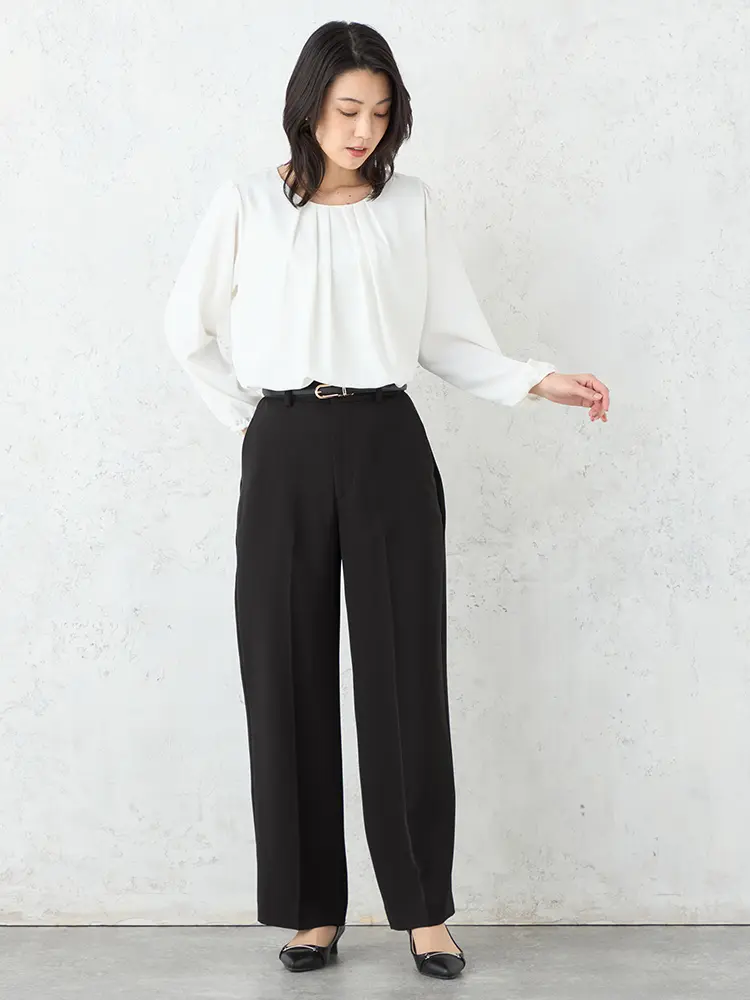 防シワ加工と後ゴム仕様で、忙しい一日も清潔感を保ちつつ快適に過ごせる一着です。