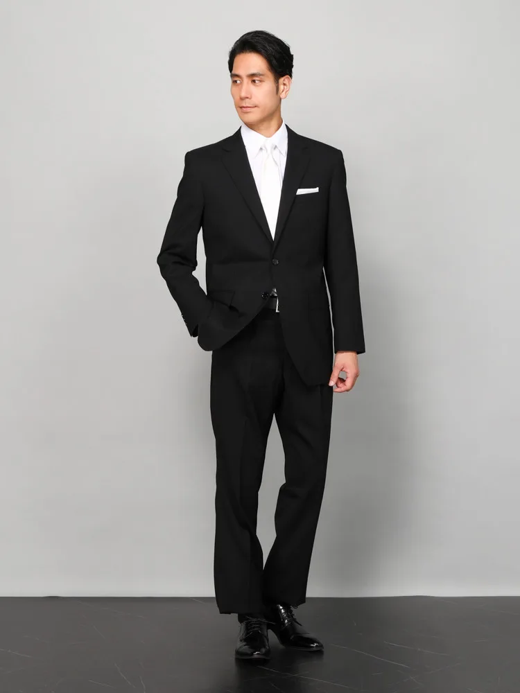 【即納】【WEB限定】フォーマル2つボタン上下ウォッシャブルウエストアジャスター仕様黒無地通年礼服