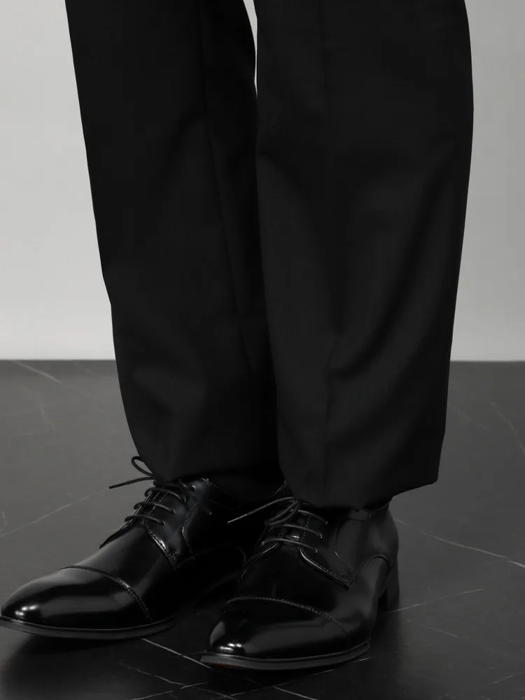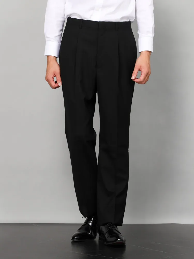[礼服]【ウエストアジャスター仕様】フォーマル 2つボタン ワンタック 黒無地 カンサイ・ヤマモト 通年 礼服【定番】