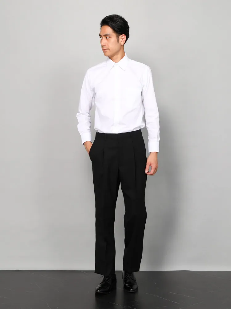 左右に1本ずつ生地の折り込みがあり、標準的なシルエットでシーンを選ばず上品なシルエットが楽しめます。