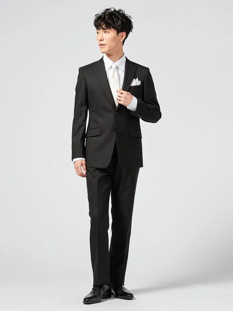 [礼服]【ワンタック】フォーマル 2つボタン サマーフォーマル ウール混 黒無地 チェスターバリー 春夏 礼服