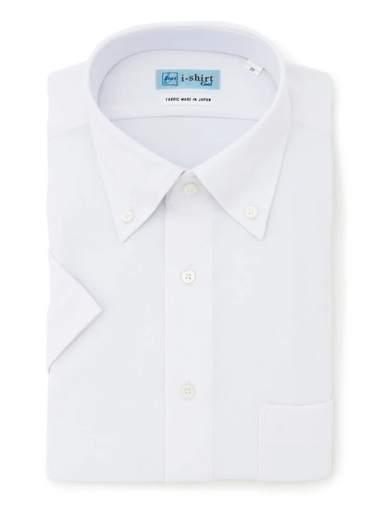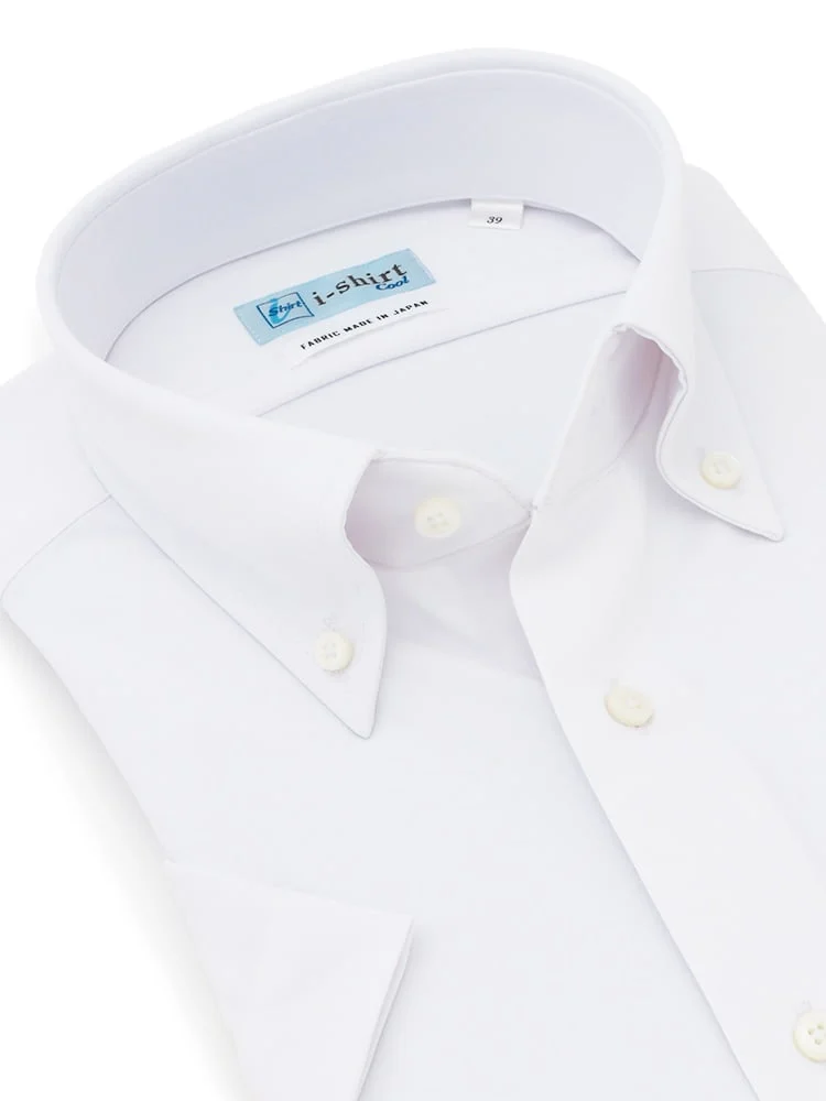 【完全ノーアイロン】半袖 アイシャツ ボタンダウン 白無地 冷感 UV加工 ワイシャツ i-shirt 春夏