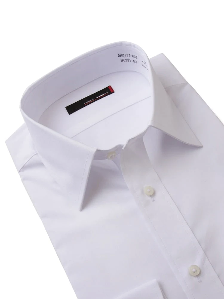 【形態安定】長袖 ワイシャツ レギュラー nero 通年 白無地【冠婚葬祭/リクルート使用可】