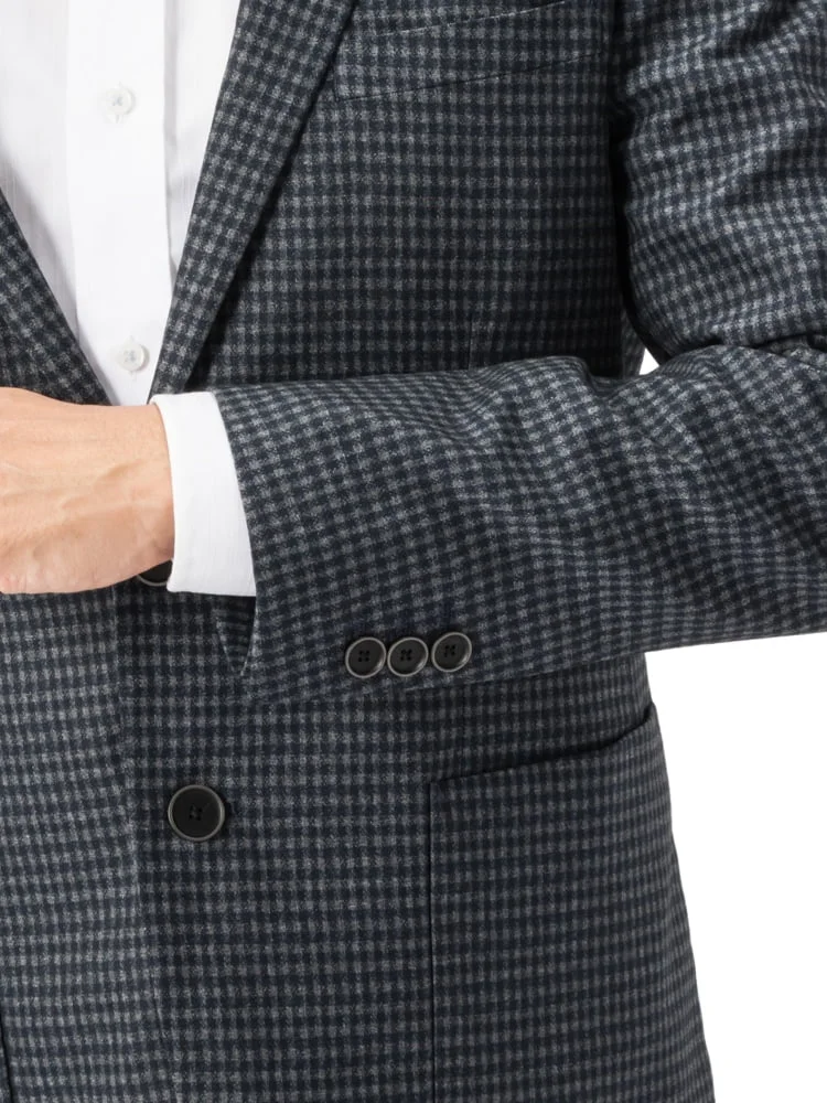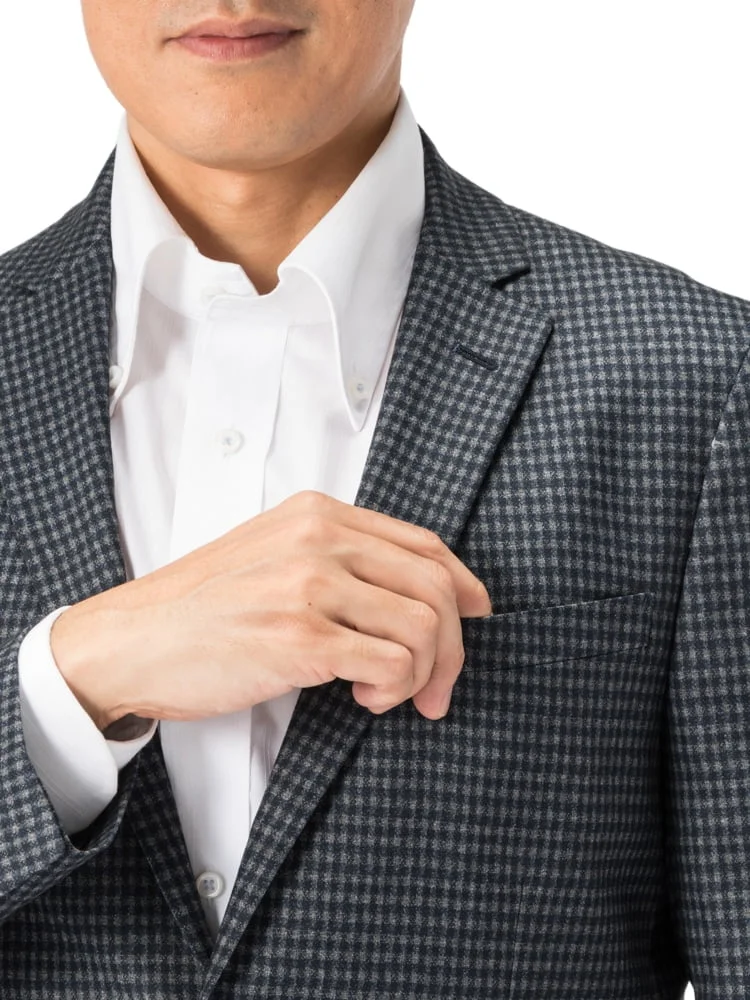 【ストレッチ】ジャケット2つボタンTOLLEGNO社生地使用キュプラ裏地グレンチェックS&MBLUELABEL