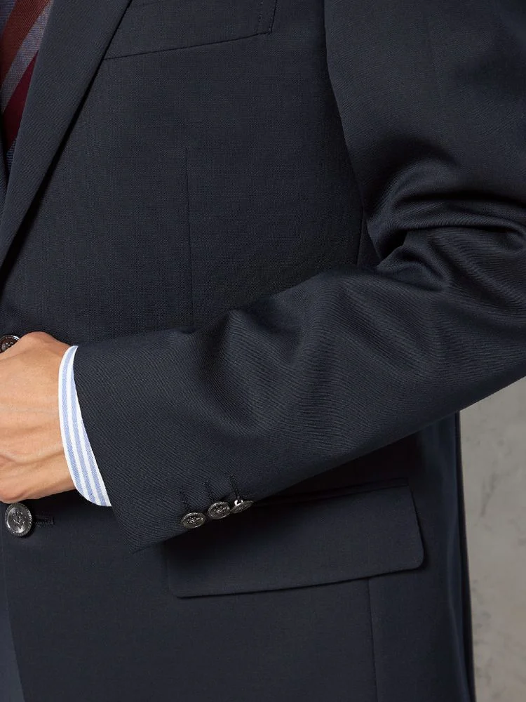 【ウール100%】ジャケットメタル2つボタンブレザー【イタリアREDA社製】通気性耐シワ性紺無地