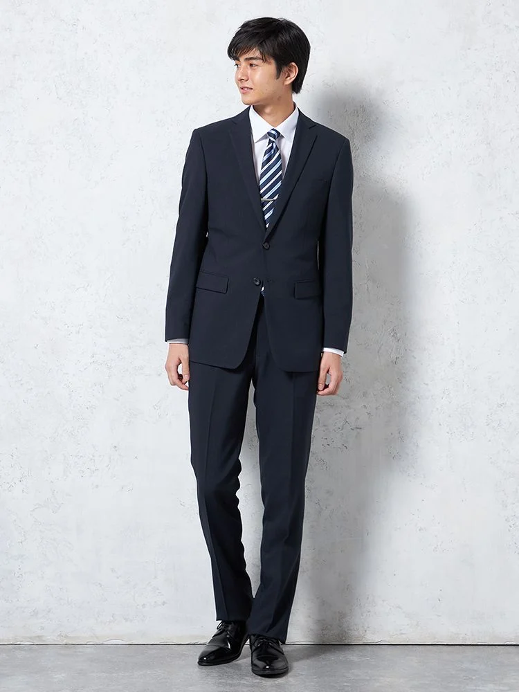 高い汎用性をほこるネイビーワントーンの2つ釦スーツです。