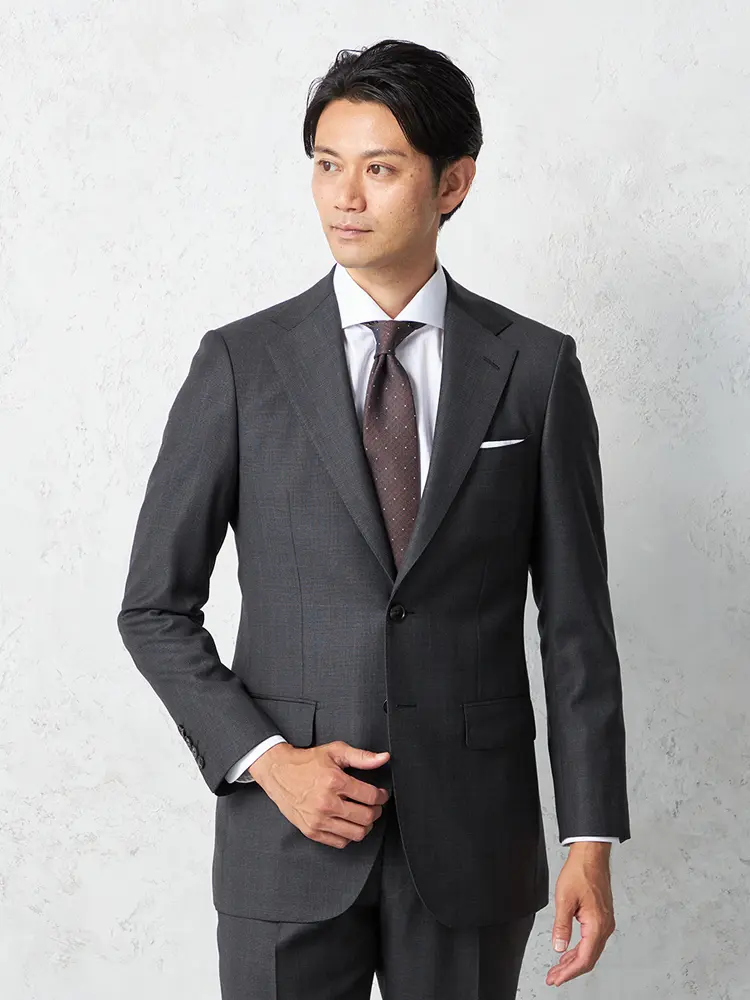 シンプルなデザインで年代を問わず、幅広いシーンで使える汎用性の高いスーツです。